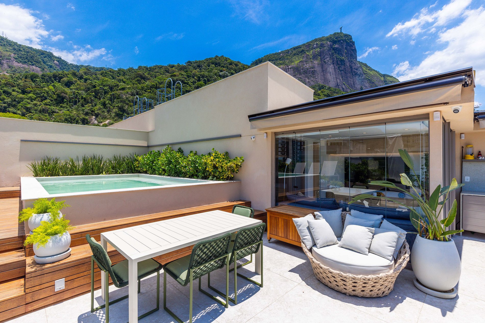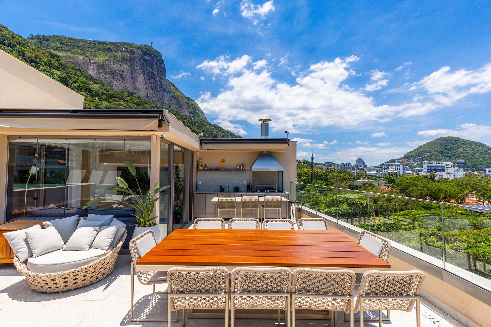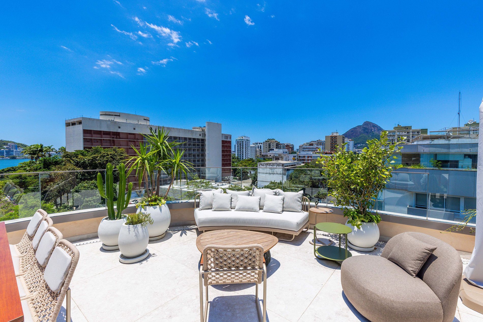 O grande destaque do apartamento é a vista privilegiada para a Lagoa e o Cristo Redentor, proporcionando uma experiência única de estar no Rio de Janeiro. A cobertura oferece um ambiente especial para relaxar e apreciar a paisagem.