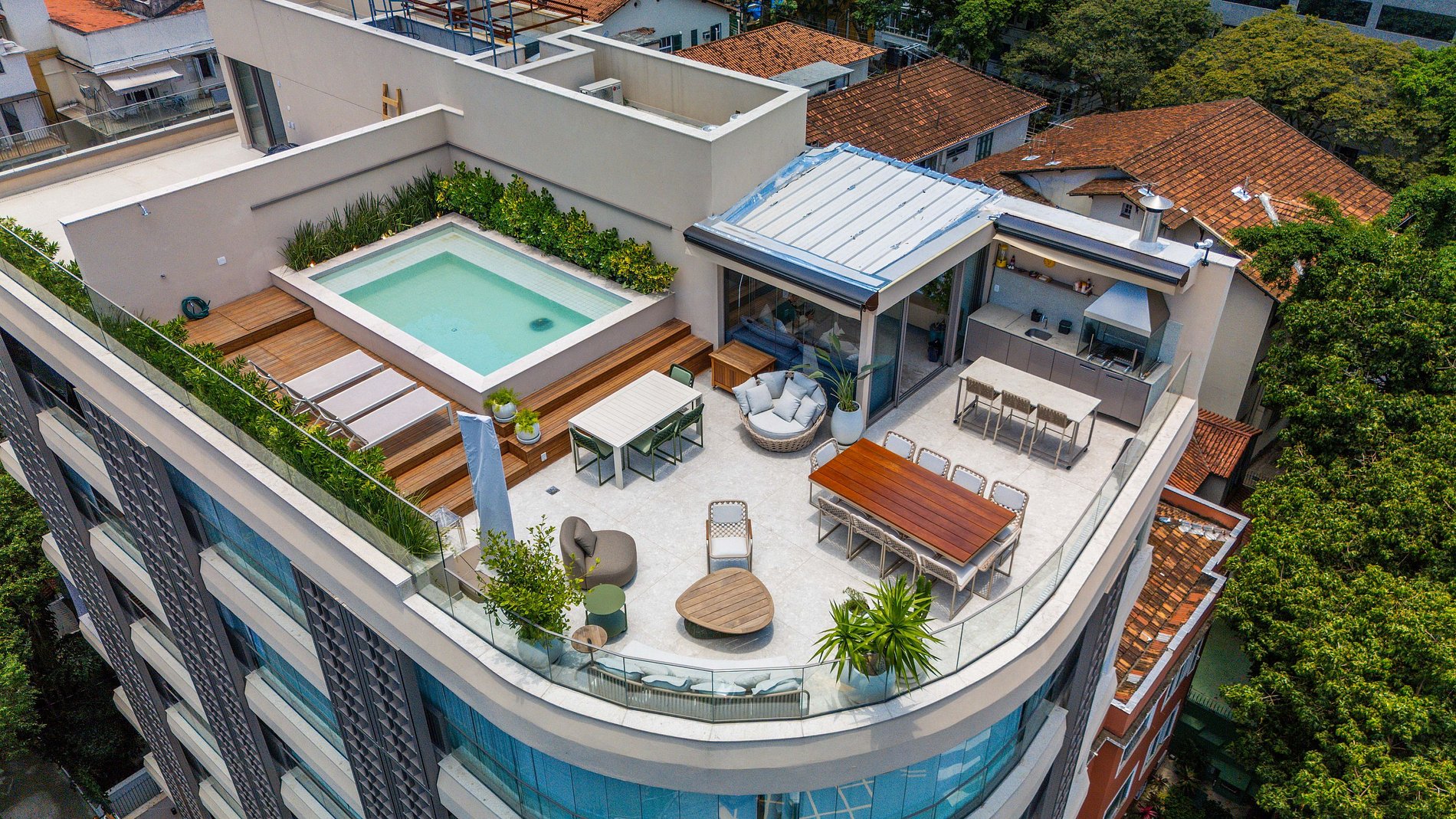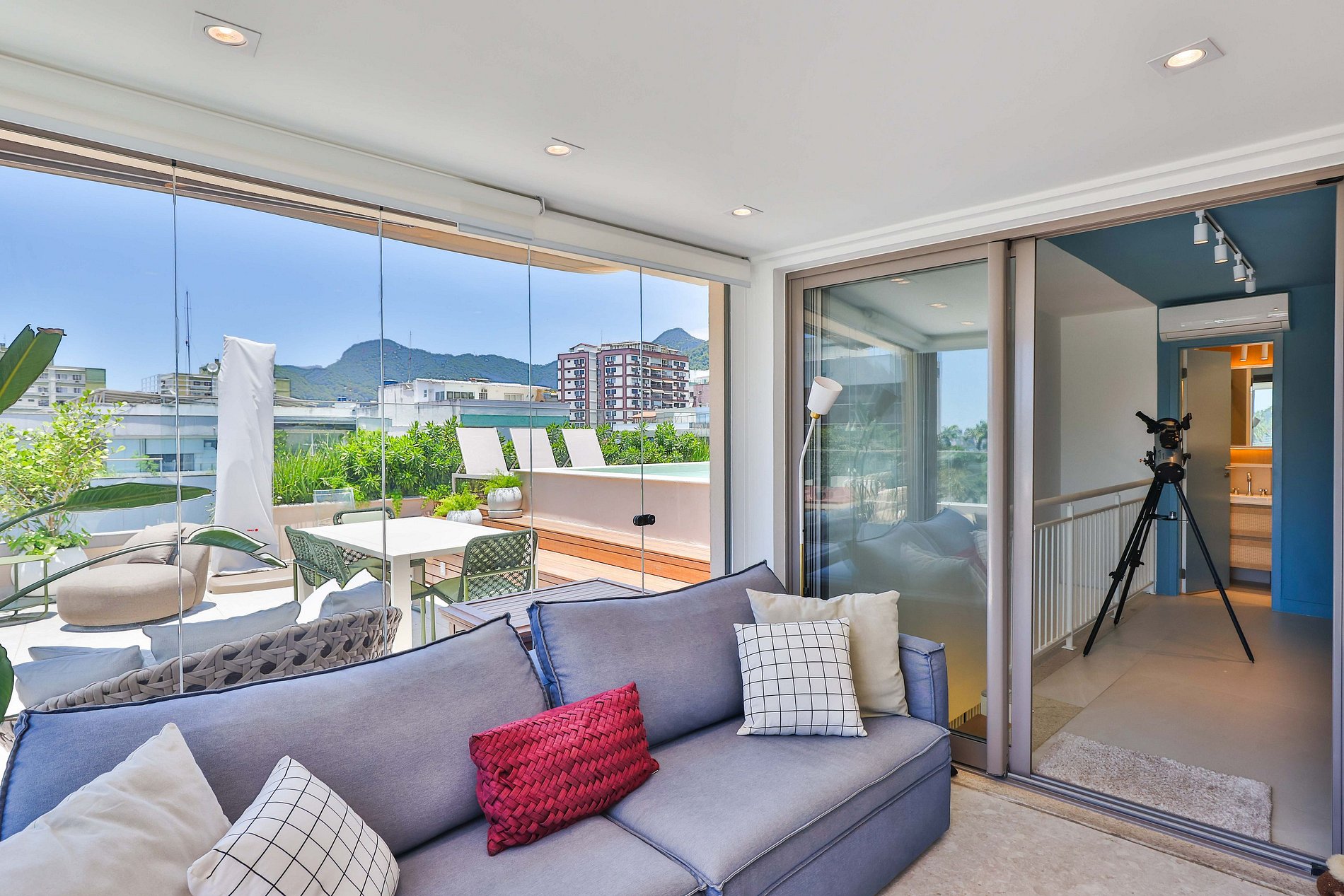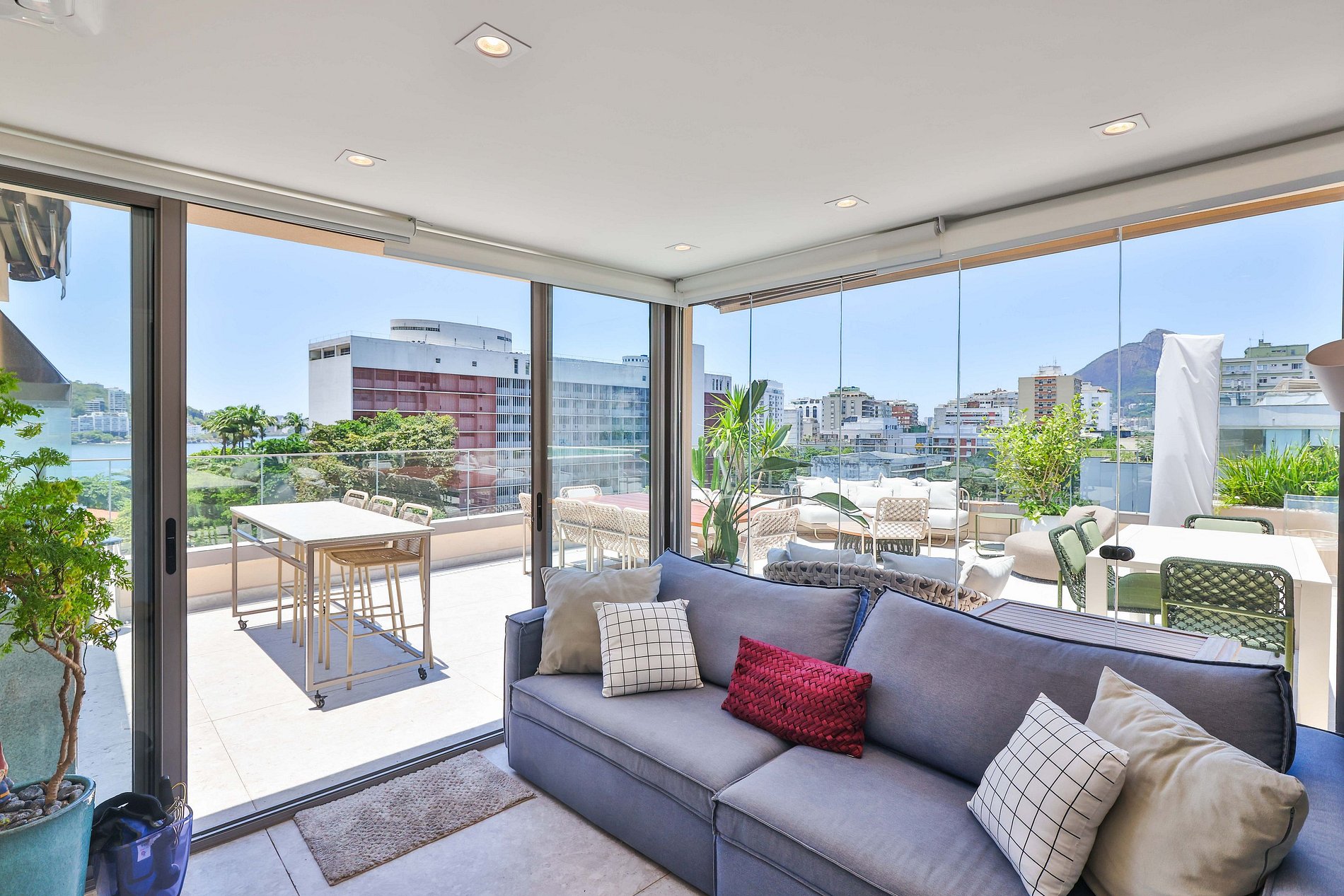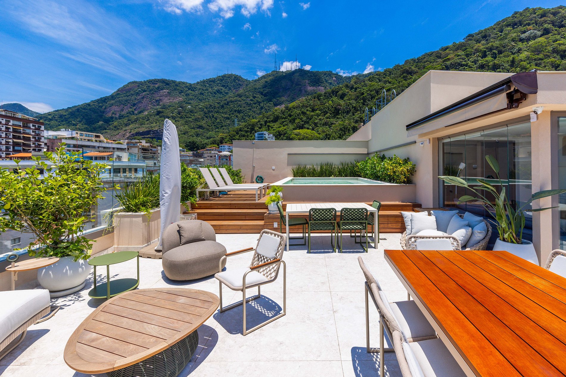 O grande destaque do apartamento é a vista privilegiada para a Lagoa e o Cristo Redentor, proporcionando uma experiência única de estar no Rio de Janeiro. A cobertura oferece um ambiente especial para relaxar e apreciar a paisagem.