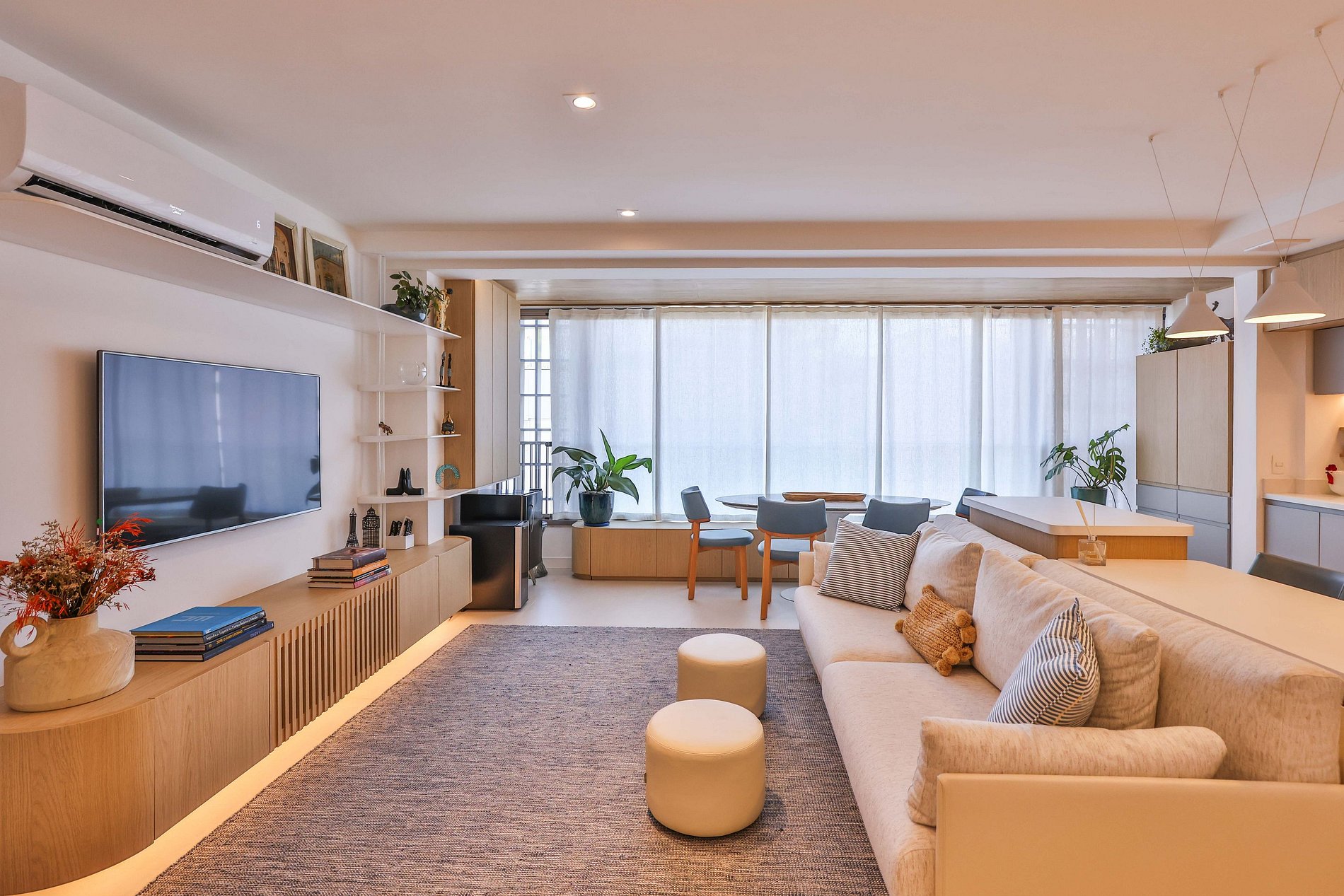 Com projeto assinado por escritórios renomados de arquitetura e interiores, o apartamento apresenta ambientes bem distribuídos, iluminação natural abundante e acabamentos de alto padrão, proporcionando uma estadia acolhedora e funcional para famílias ou grupos.