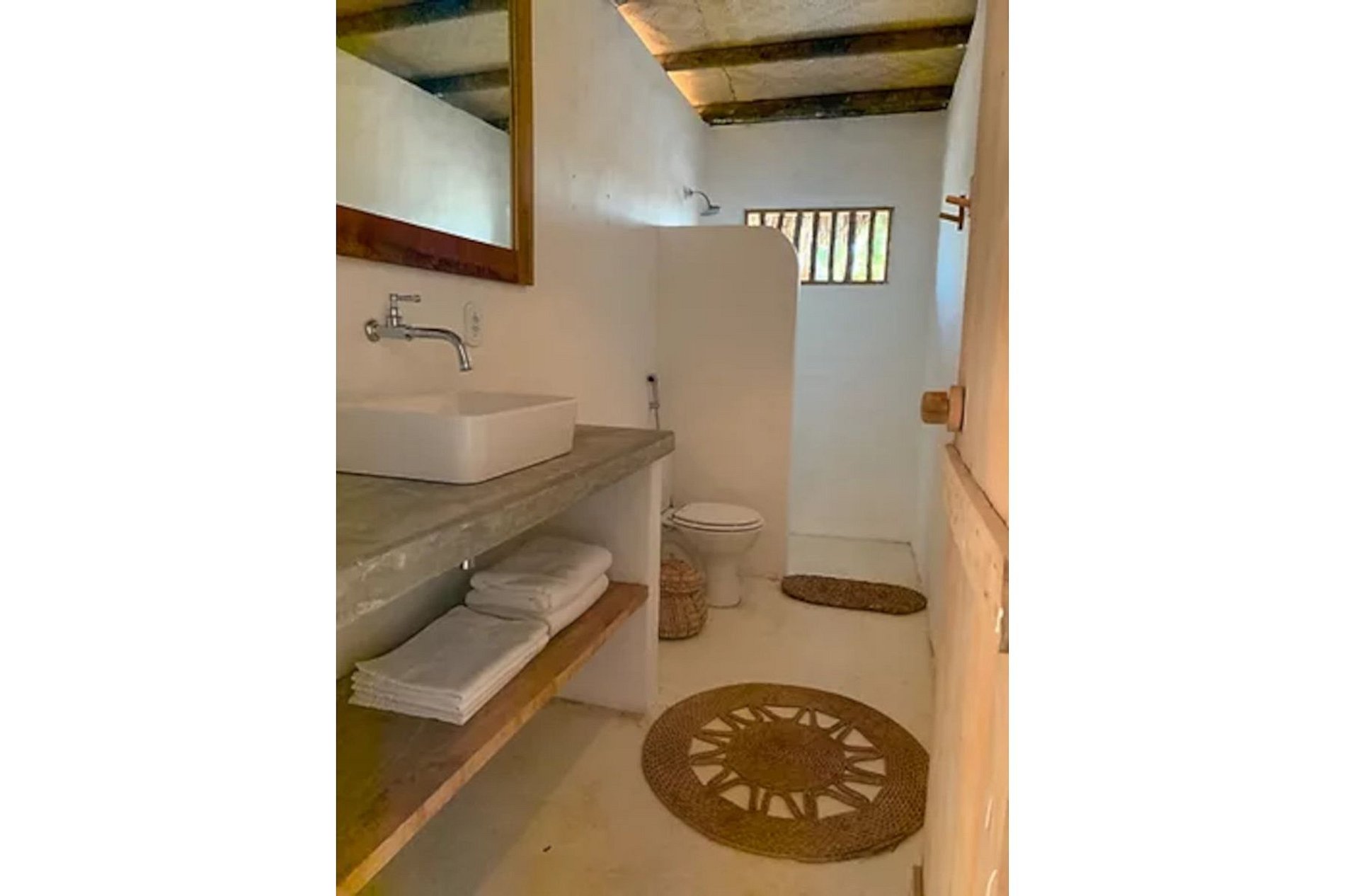 A casa acomoda até 10 hóspedes, é composta por 5 suítes, uma grande sala de estar e jantar, lavabo, uma cozinha totalmente equipada e lavanderia. Duas funcionárias cuidam do preparo das refeições assim como da arrumação e limpeza diária da casa, o caseiro diariamente cuida da piscina e jardim.