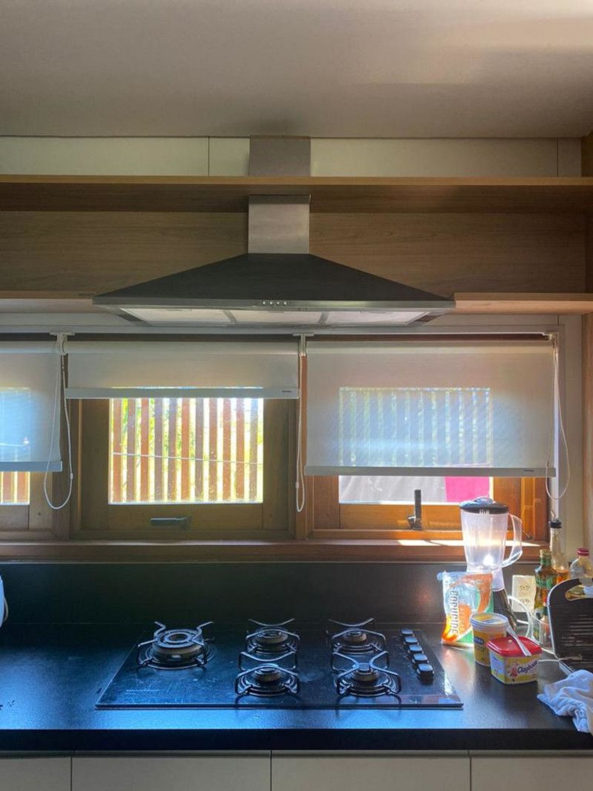 Moderna e funcional, repleta de armários, eletrodomésticos de primeira linha e os mais variados utensílios culinários.