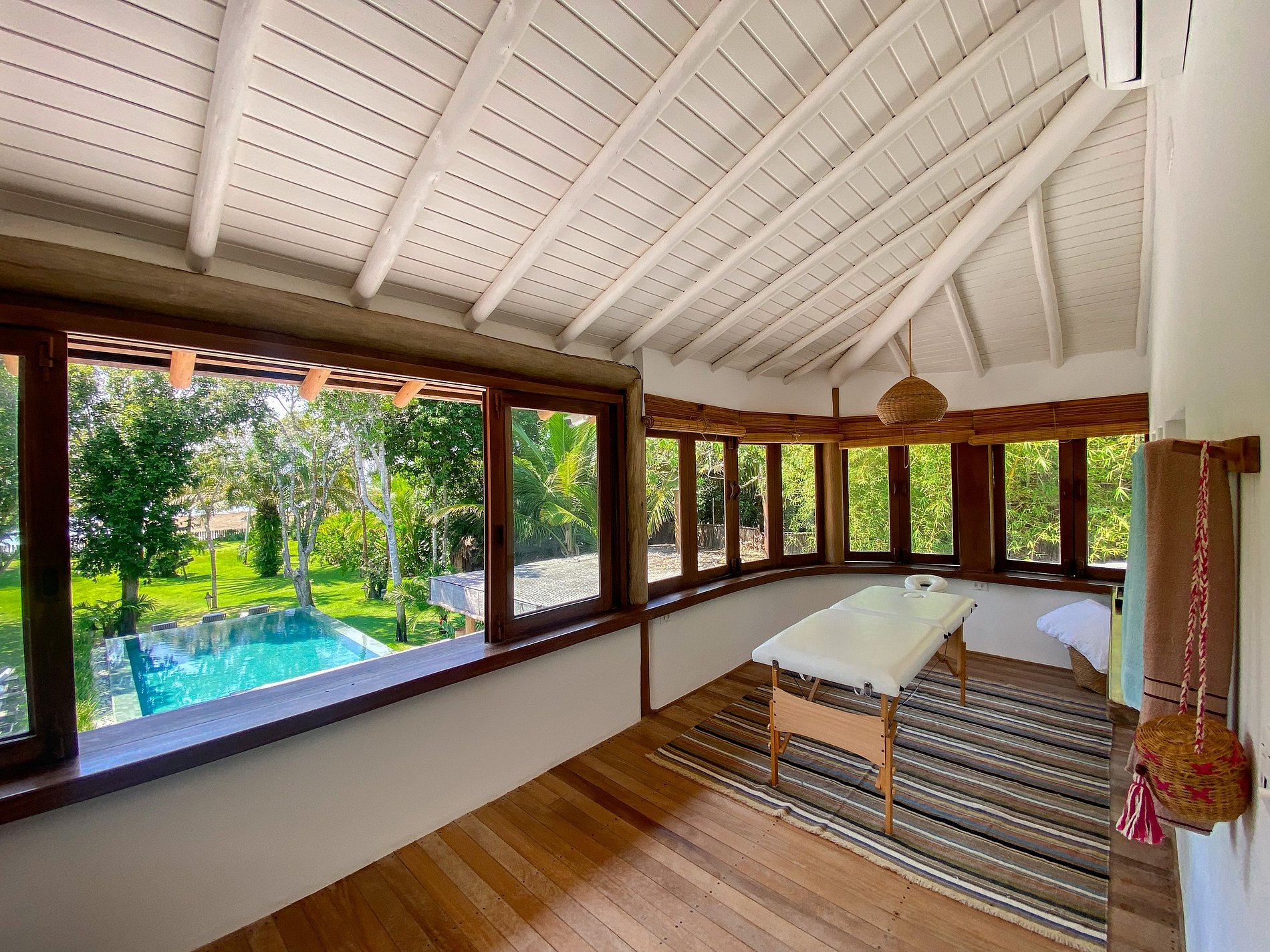 Com 9 suítes, divididas entre Casa Principal (onde fica a Suíte Master com vista para o mar e para a piscina) e 3 bangalôs, este é o refúgio ideal para famílias e grupos de amigos que estejam buscando férias tranquilas e com muita mordomia no sul da Bahia.