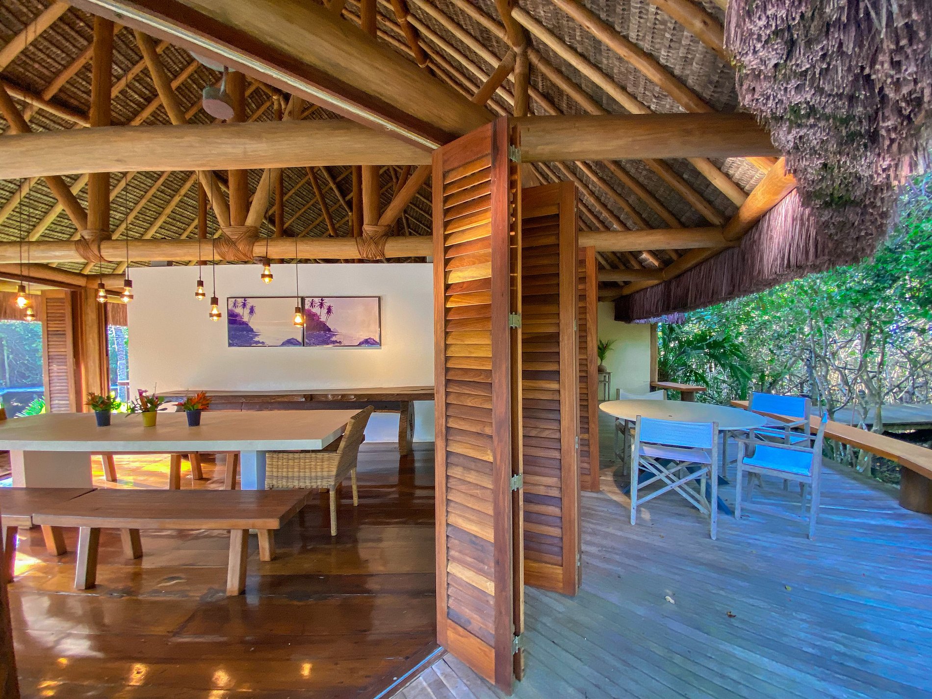 Propriedade em Trancoso, pé na areia, a apenas 05 minutos de carro do Quadrado. Dispõe de 04 bangalôs supercharmosos e uma casa anexa, todos construídos com bastante madeira e fibras naturais, fazendo com o que integrem bem com a natureza ao redor.