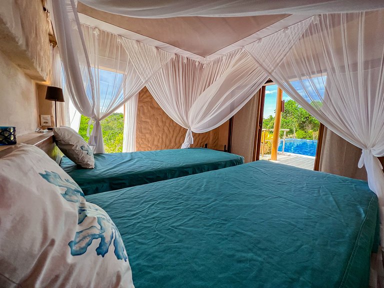 • Um Bangalô com 1 suíte com 2 camas de solteiro e 1 suítes com 1 cama de casal
