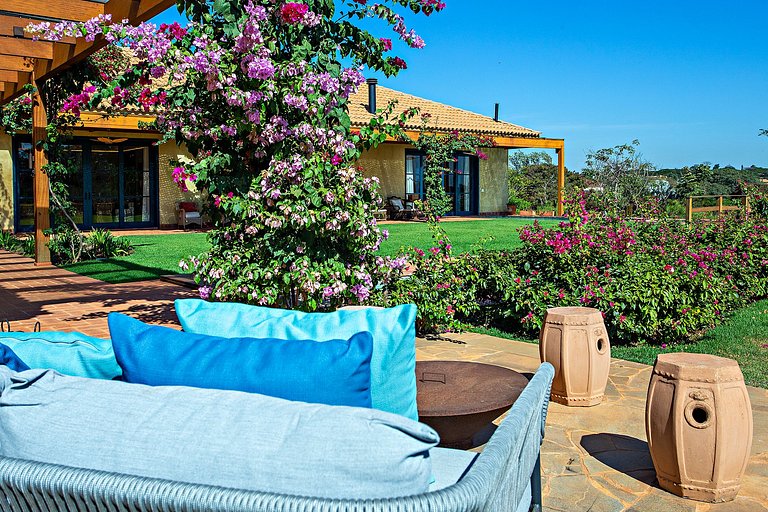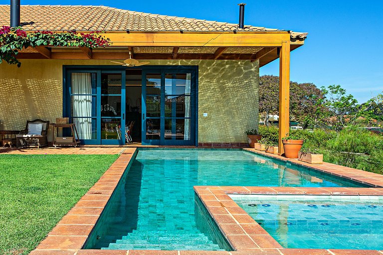 • Sede Social projetada por Marcos Tomanik com 17 villas, piscina, bar e restaurante exclusivos para condôminos