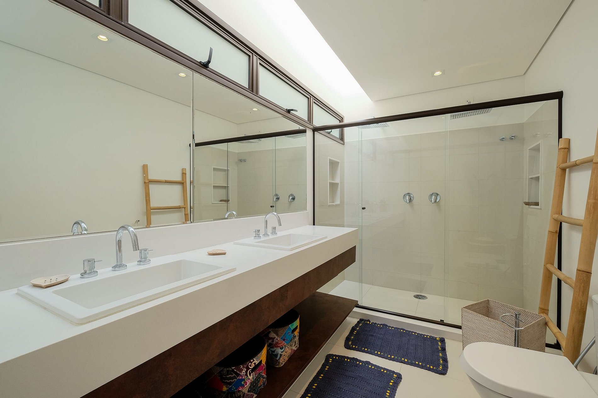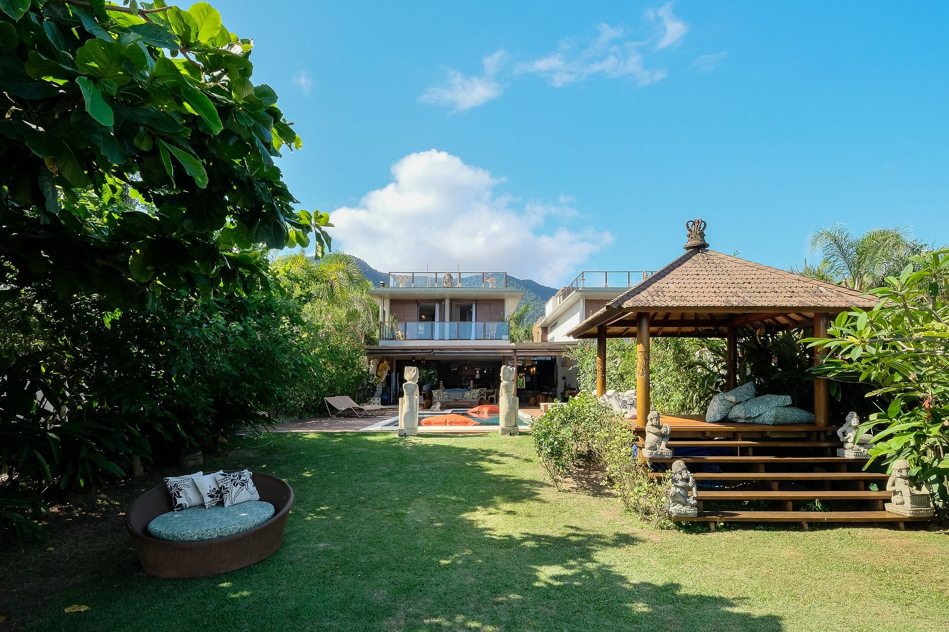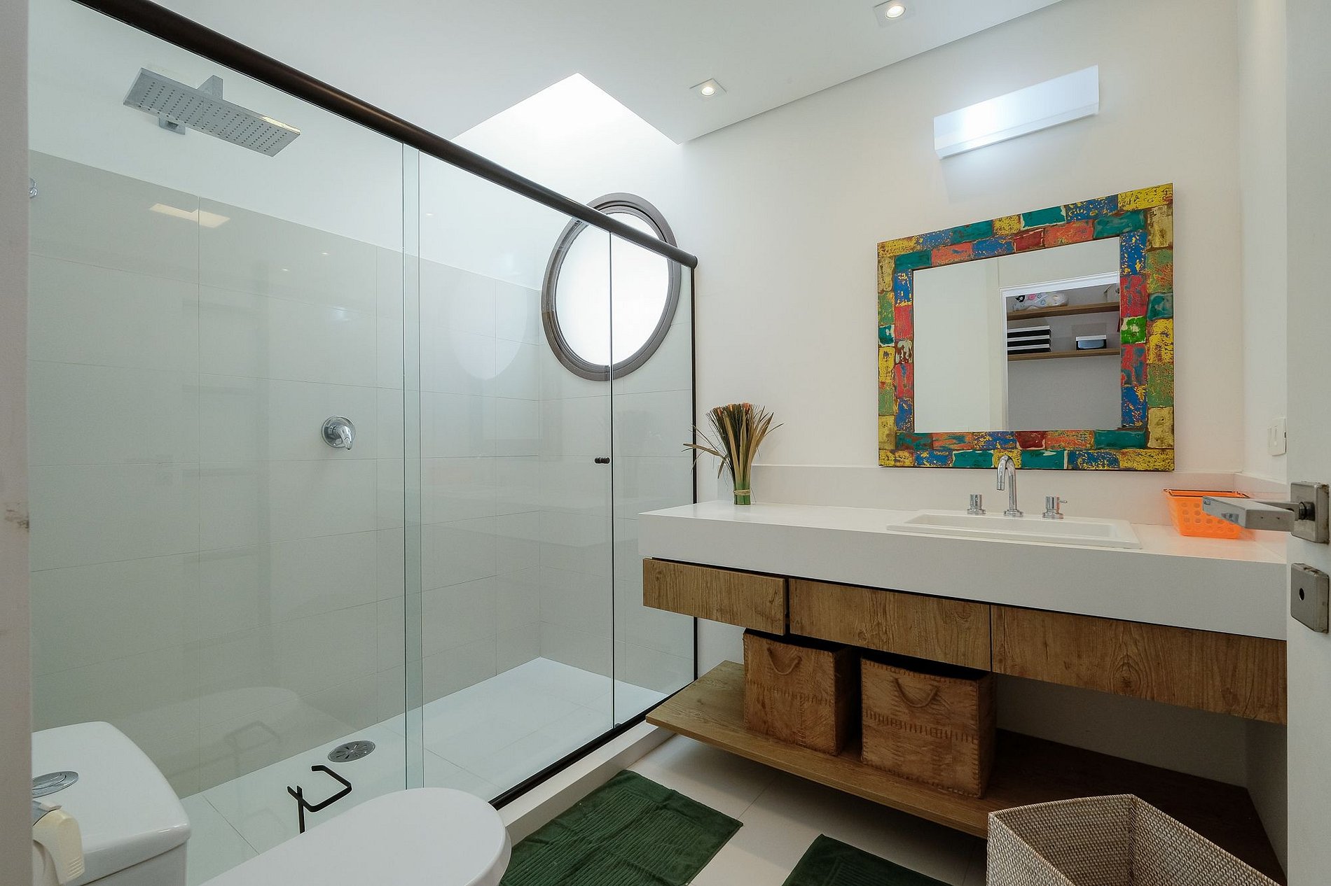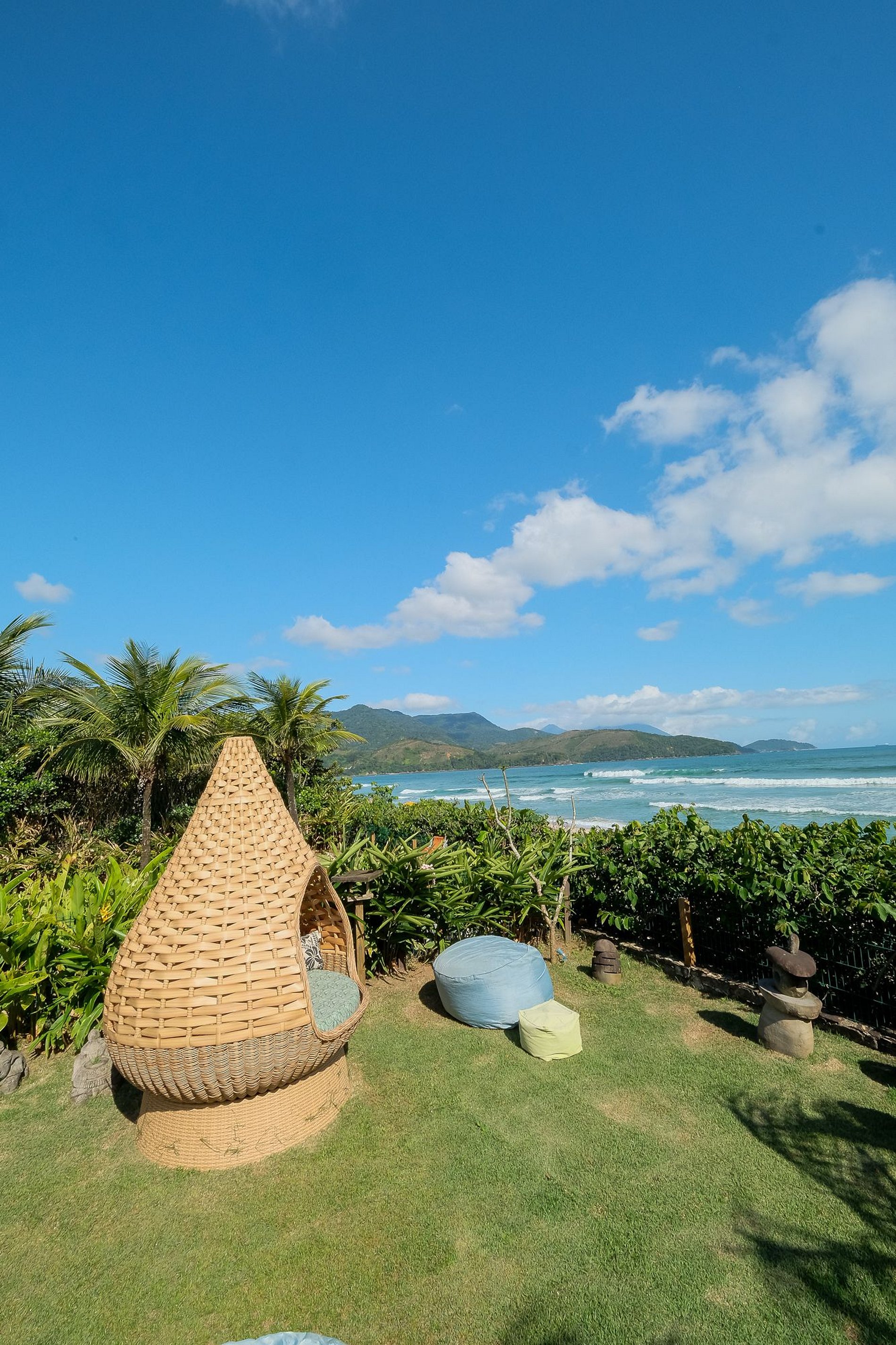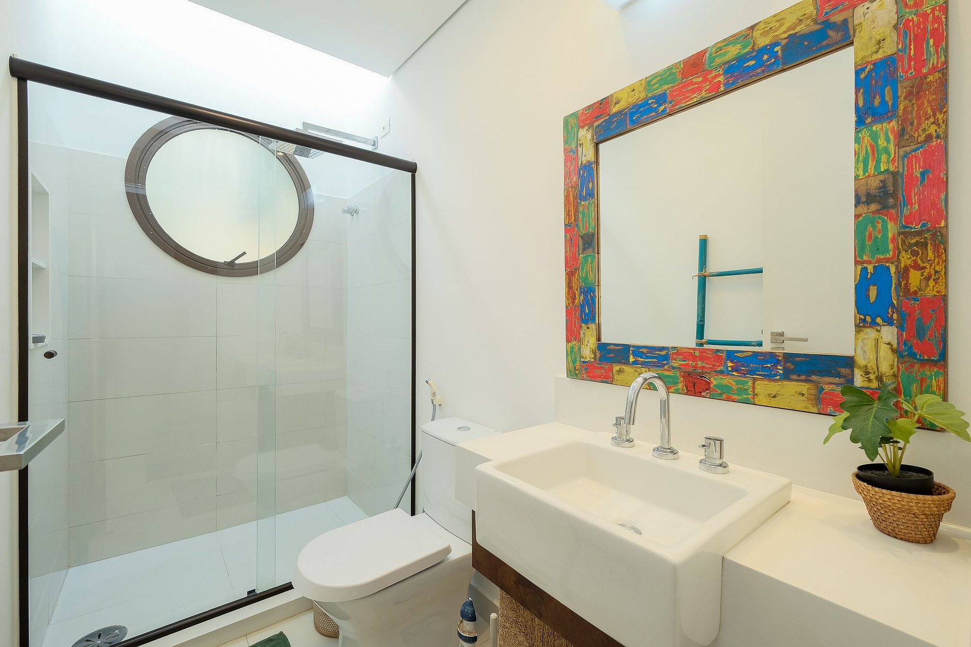 A casa destaca-se pela sua amplitude, luminosidade e decoração Balinesa, que alia charme e elegância. Os ambientes são integrados, proporcionando praticidade e harmonia. Na sala de estar, dois sofás brancos extremamente confortáveis e uma TV criam o cenário perfeito para momentos de relaxamento após a praia. A sala de jantar conta com uma imponente mesa de madeira com capacidade para 12 pessoas, ideal para refeições descontraídas e acolhedoras em família. O rooftop da casa é um diferencial, oferecendo uma área gourmet equipada com forno de pizza e uma vista deslumbrante.