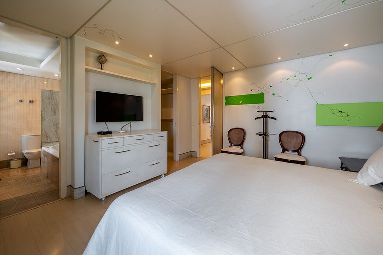 Apartamento de alto padrão no Jardim Paulista em São Paulo, próximo a Av. Paulista. Conta com estacionamento para 02 carros e serviços inclusos na diária.