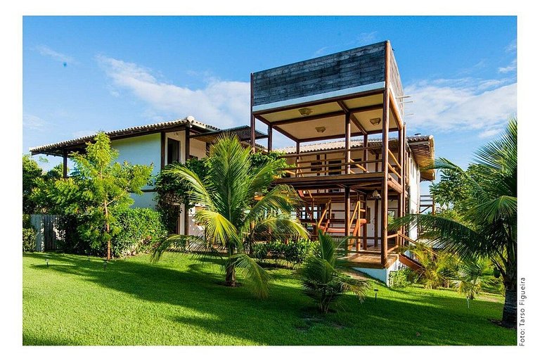 Casa com 6 suítes, localizada sobre uma linda falésia com vista para a Praia do Espelho. A arquitetura despojada facilita a entrada de luz natural em todos os ambientes.