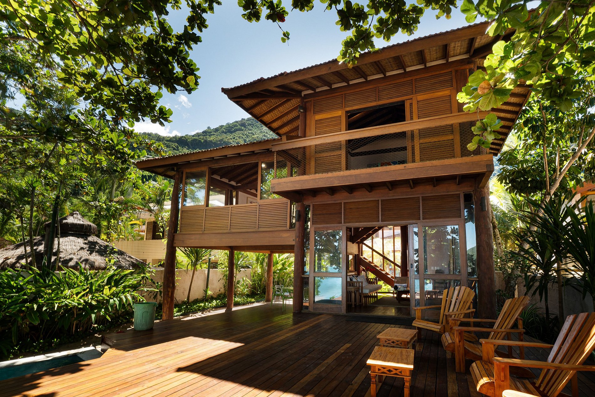 A área externa é um verdadeiro refúgio: deck de madeira com piscina frente ao mar, ideal para momentos de lazer e contemplação. Conta ainda com dependência de empregada reversível e 3 vagas de garagem.