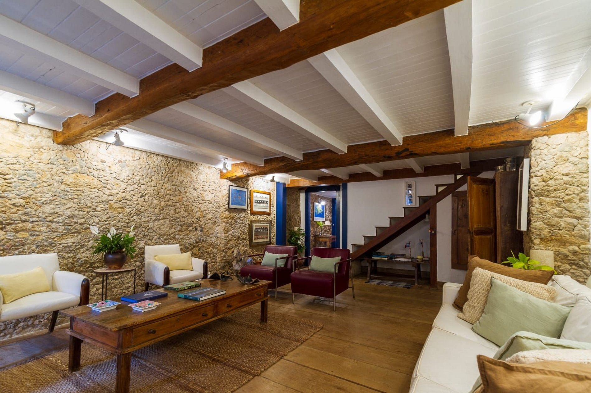 Bela casa no centro histórico de Paraty. Dispõe de piscina climatizada, churrasqueira, sauna úmida, escuna (contratada à parte) e estacionamento descoberto para 03 carros. É a locação ideal para quem busca um mergulho na história da cidade, além de conforto e momentos de descanso.