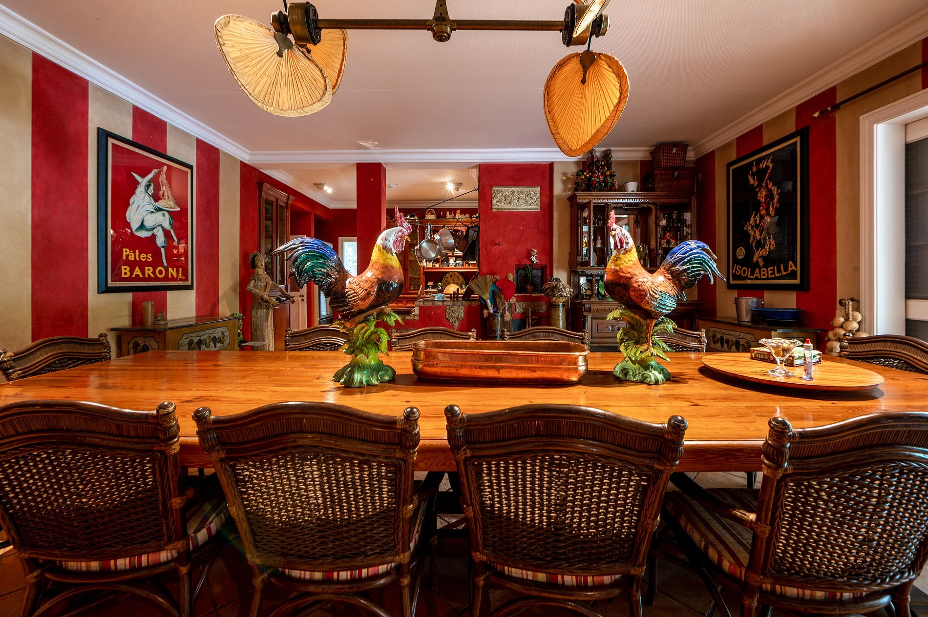 Ambientes amplos, claros e arejados; salas de estar com lareiras em ambientes com pé-direito duplo, ao lado da requintada sala de jantar. Mobiliário sofisticado e confortável, com cores e formatos mais clássicos. A decoração segue esse estilo mais tradicional com cores mais elegantes que contrastam com os ambientes externos, que têm um décor mais despojado.