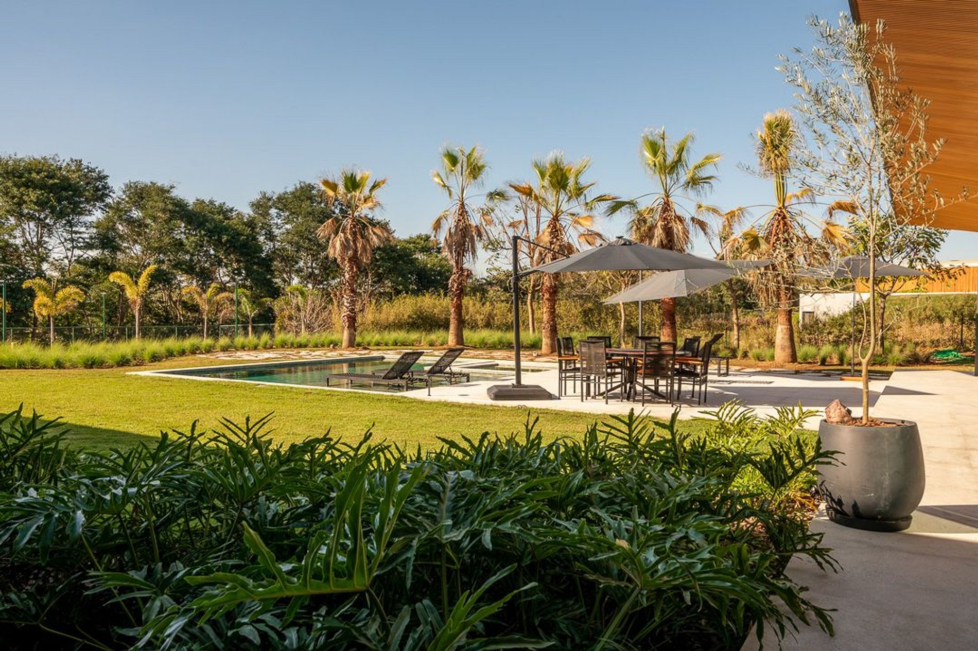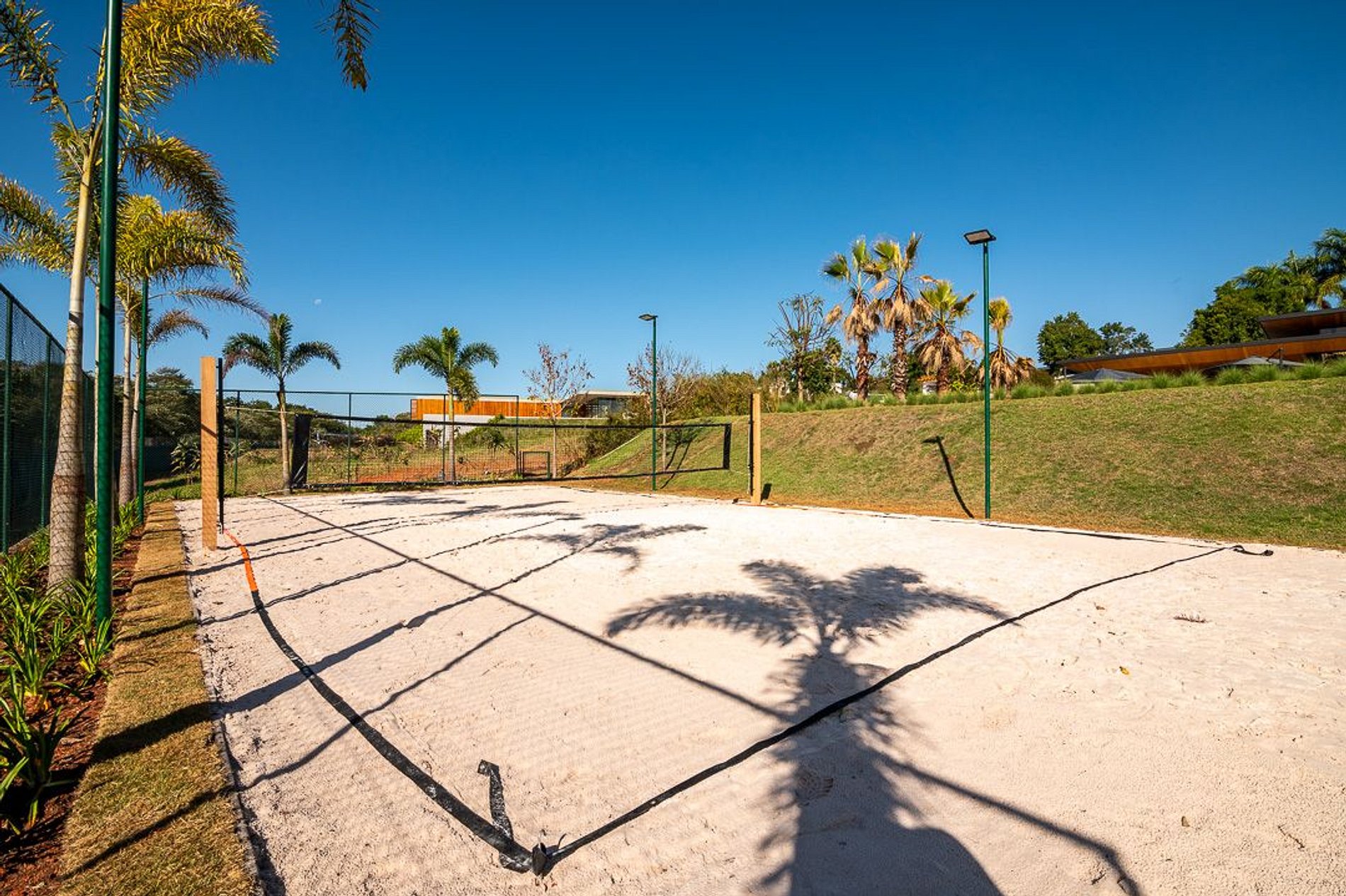 Na parte mais baixa do terreno, próxima à piscina, há uma quadra de beach tênis, perfeita para praticar esportes ao sol!