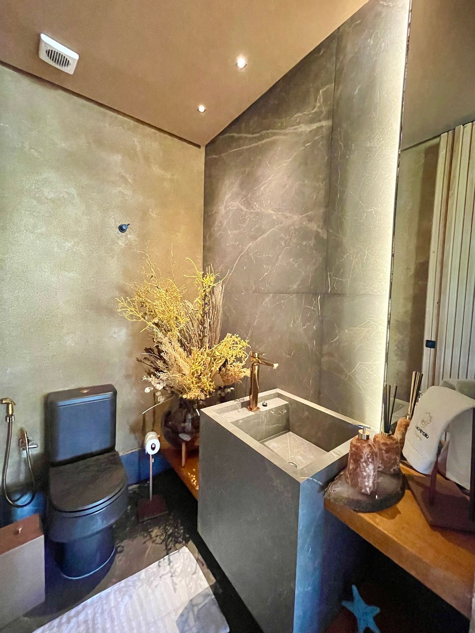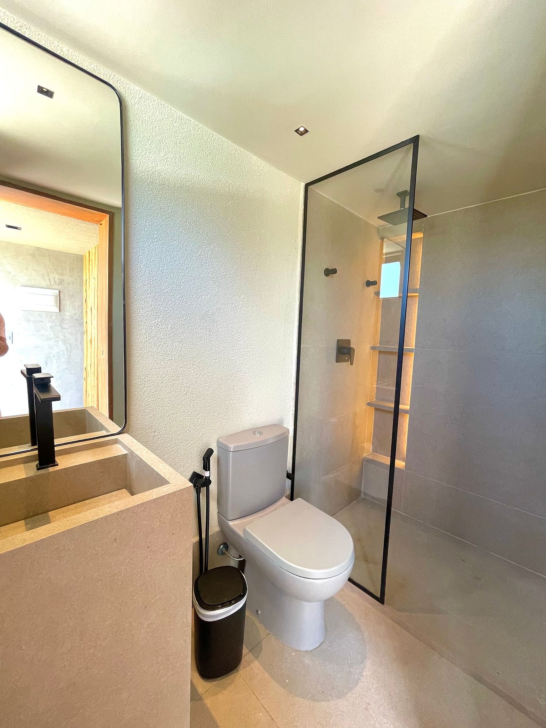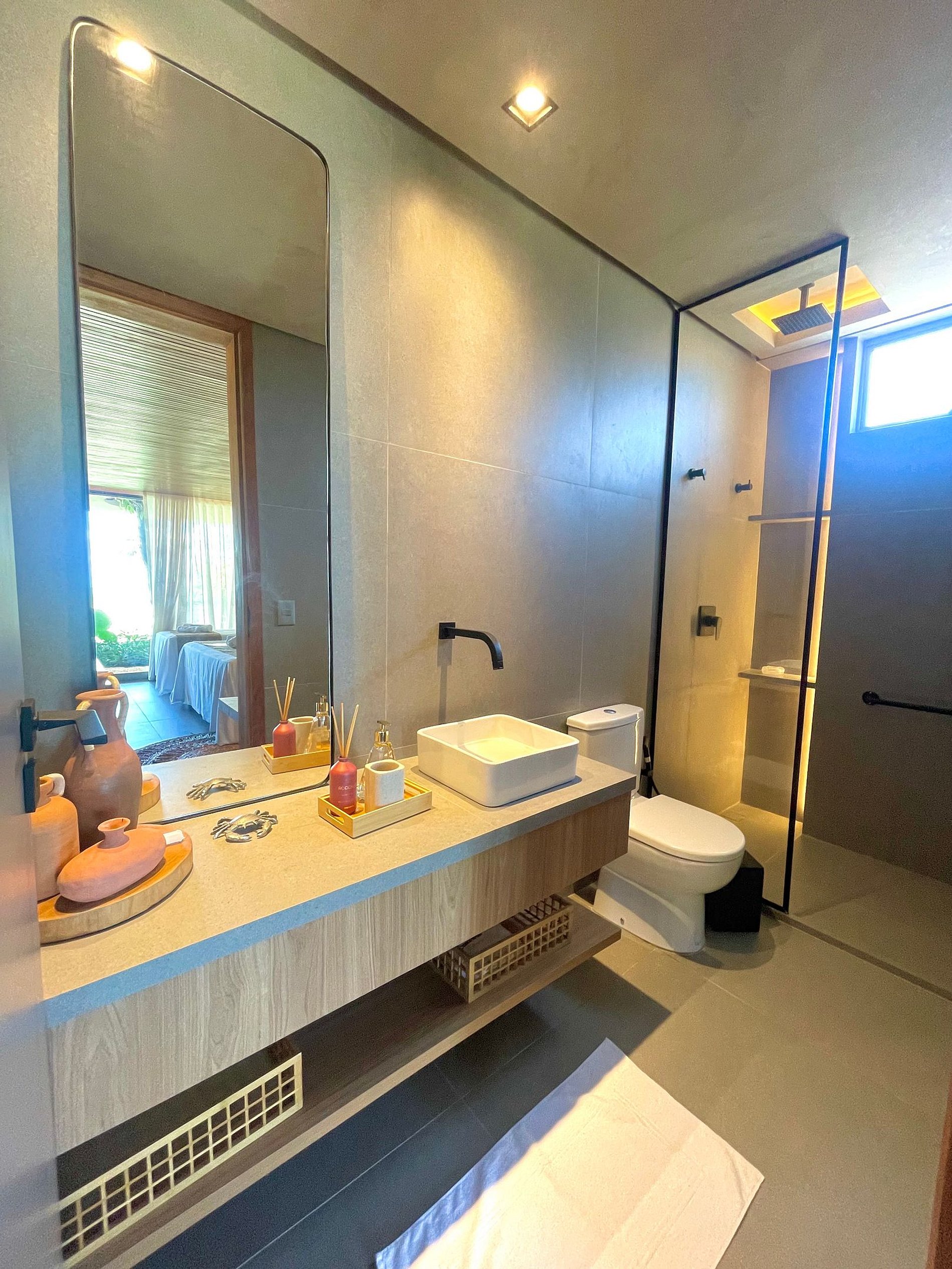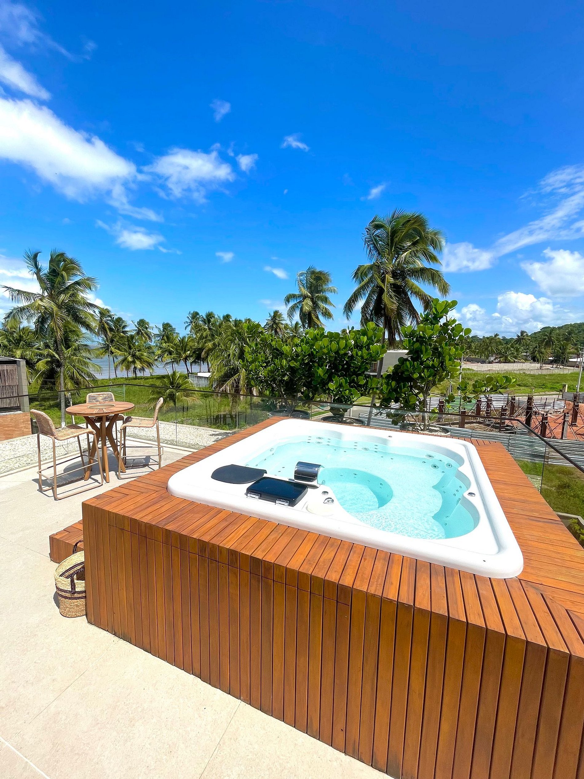 Na parte superior da casa, há um espaço gourmet com churrasqueira a gás, balcão com cadeiras altas e grandes poltronas para tomar sol. Além disso, há também uma bela Jacuzzi da qual pode-se relaxar observando a incrível vista da praia que se tem lá do alto!