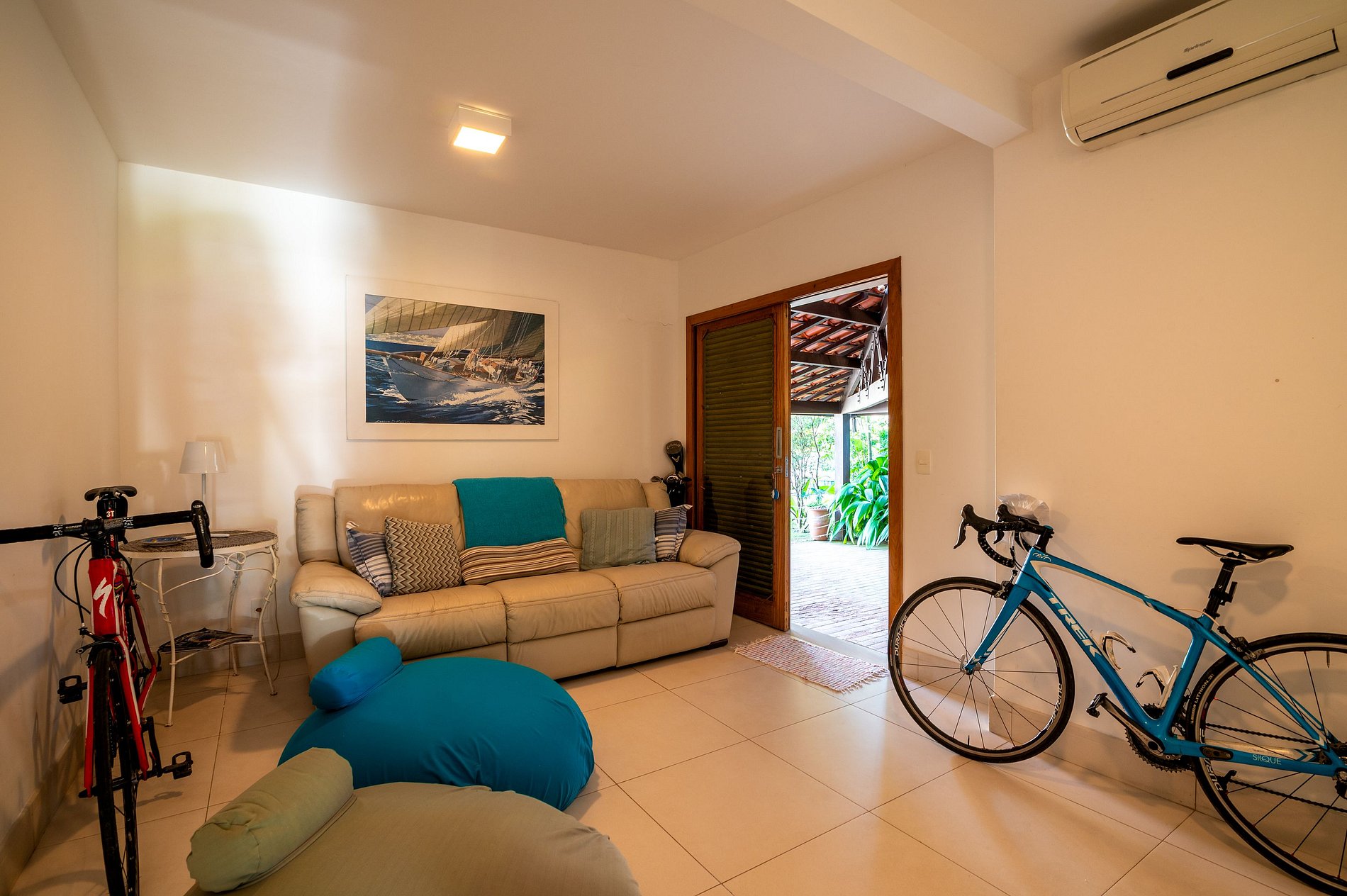 Ambientes arejados e bem iluminados; salas de jantar e estar integradas, em um ambiente com uma linda parede de pedras e grandes portas de vidro que dão acesso à varanda. A casa conta com uma sala de TV aconchegante e mais reservada. Mobiliário aconchegante e elegante, e decoração sofisticada e praiana. Todos ambientes têm ar-condicionado.