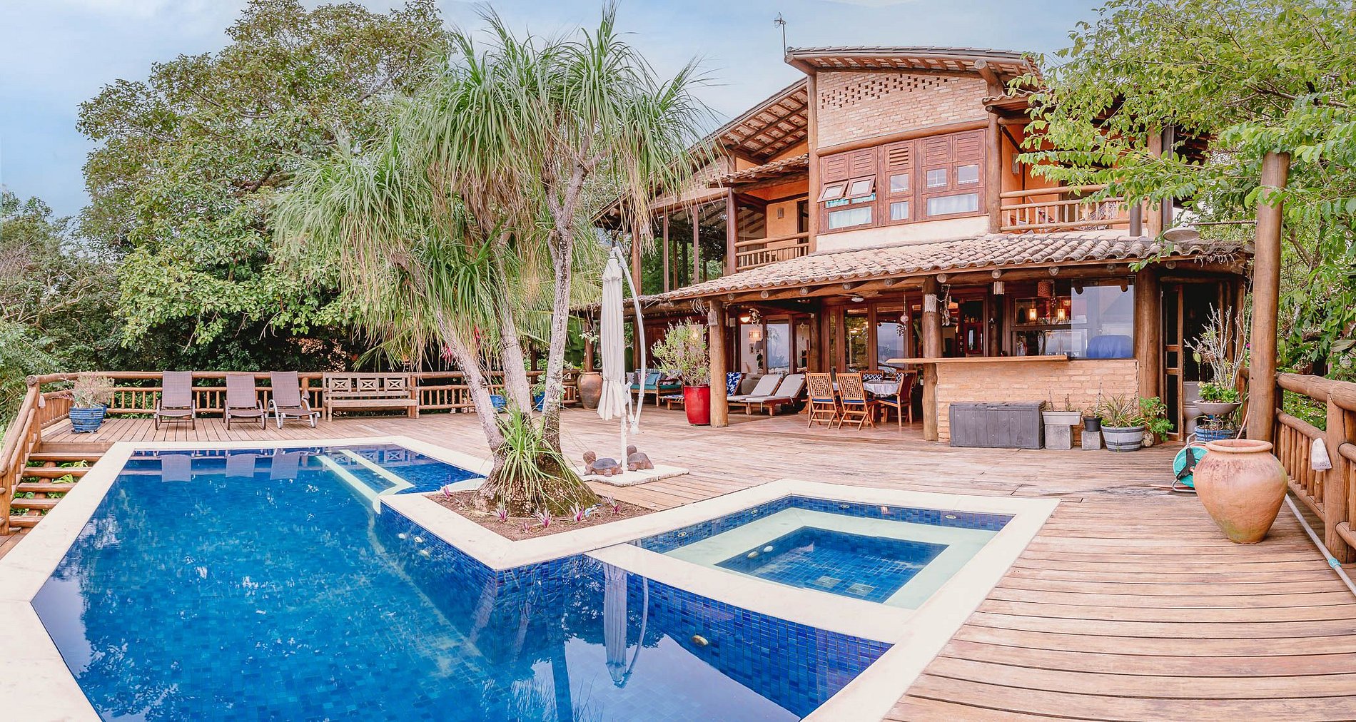 Piso superior: 3 suítes com varanda, sendo a suíte Master com banheira de hidromassagem e espaço para escritório.