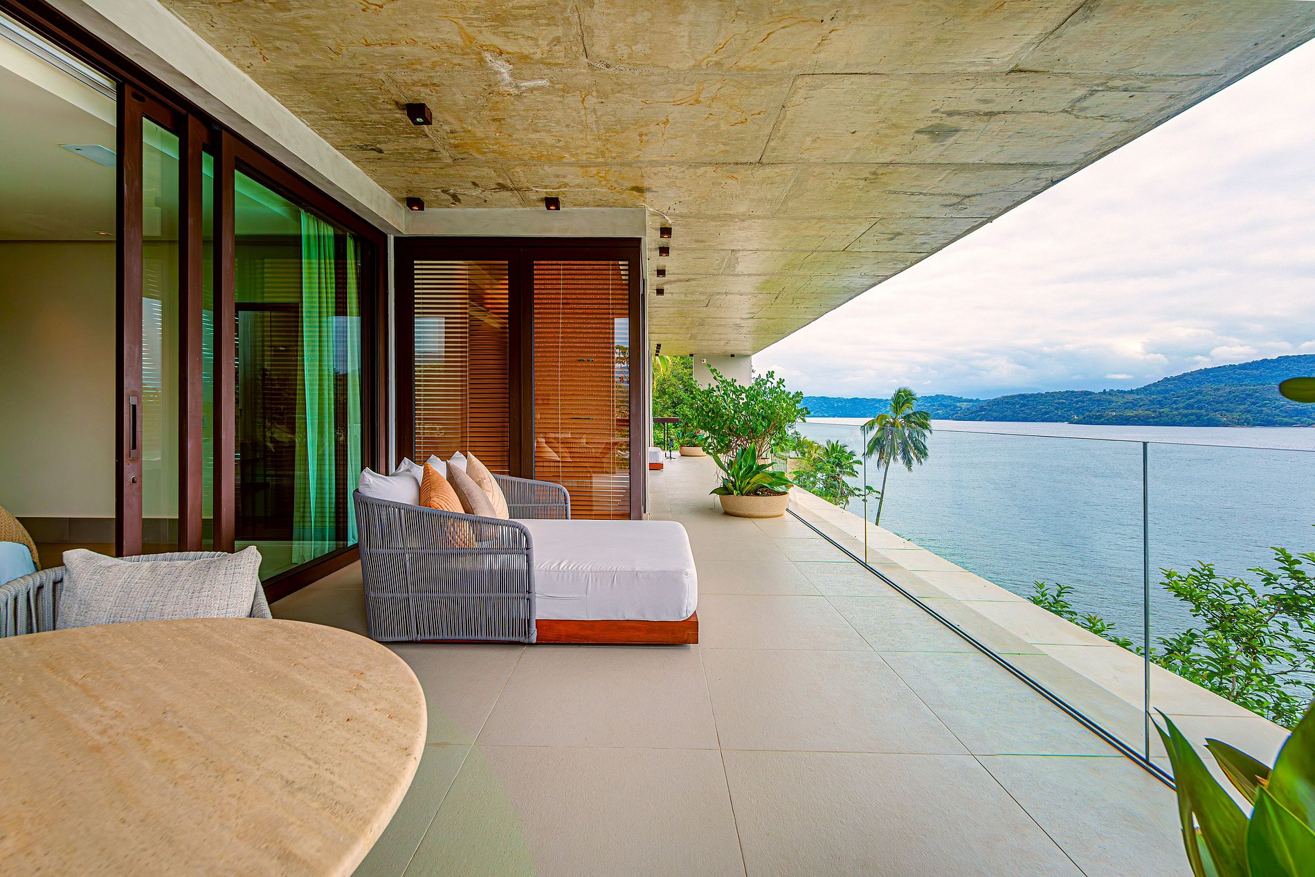 Descubra esta magnífica residência moderna à beira-mar que harmoniza luxo e natureza em um terreno de 5.600 m² e 1.900 m² de área construída. A propriedade, com vistas panorâmicas espetaculares, inclui uma casa principal com 5 suítes, incluindo a suíte máster com terraço privativo. Um estúdio adicional oferece 2 suítes com varanda e vista para o mar, ideal para hóspedes. Para o lazer, há uma academia e uma área gourmet à beira-mar com sauna, SPA, piscina, sala de jogos, sala de TV e um píer privativo.