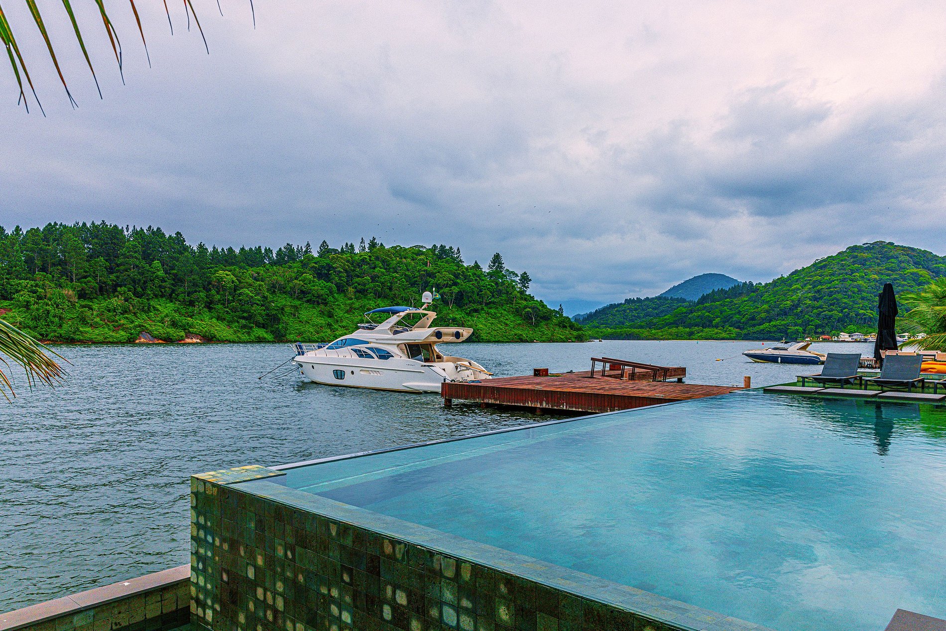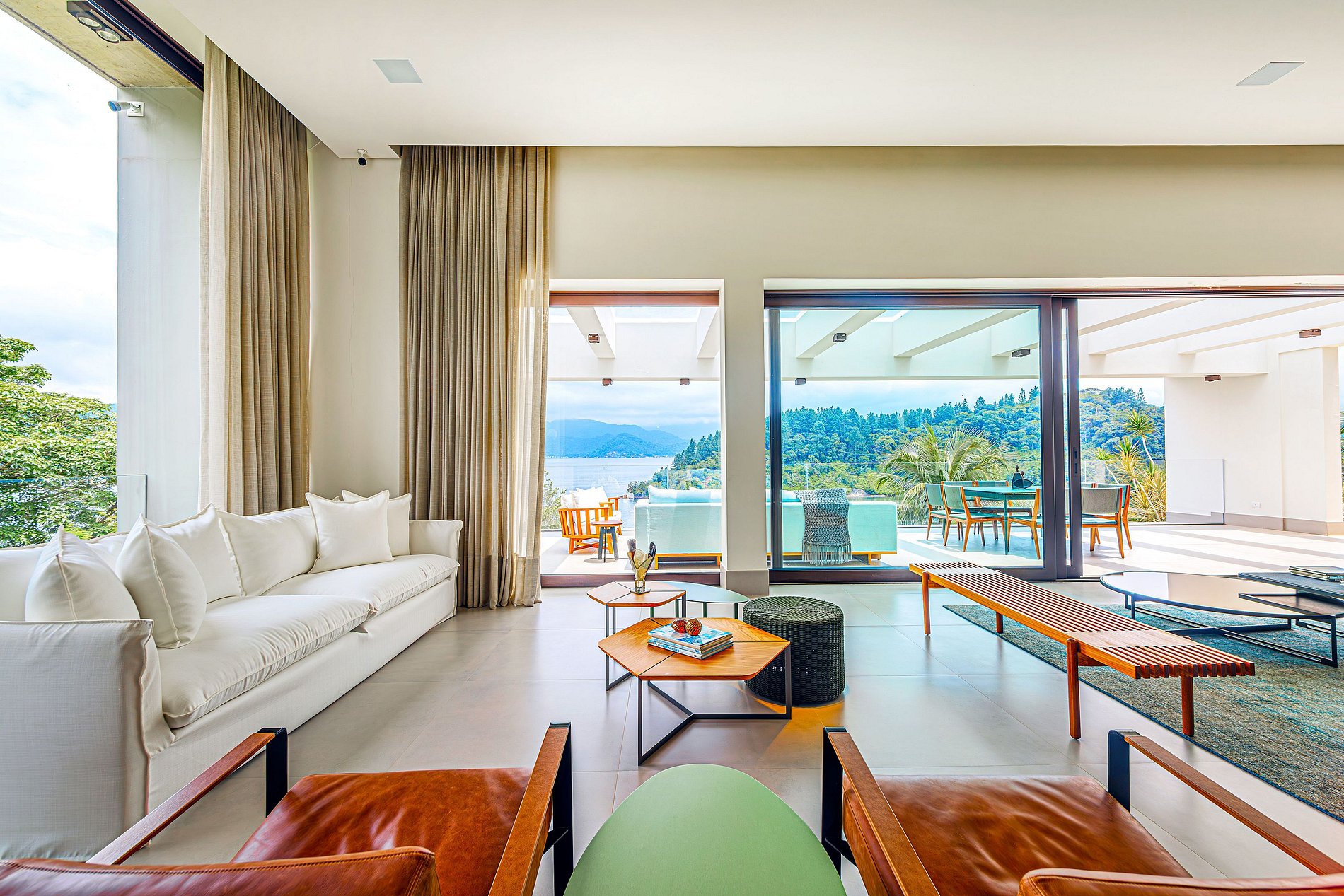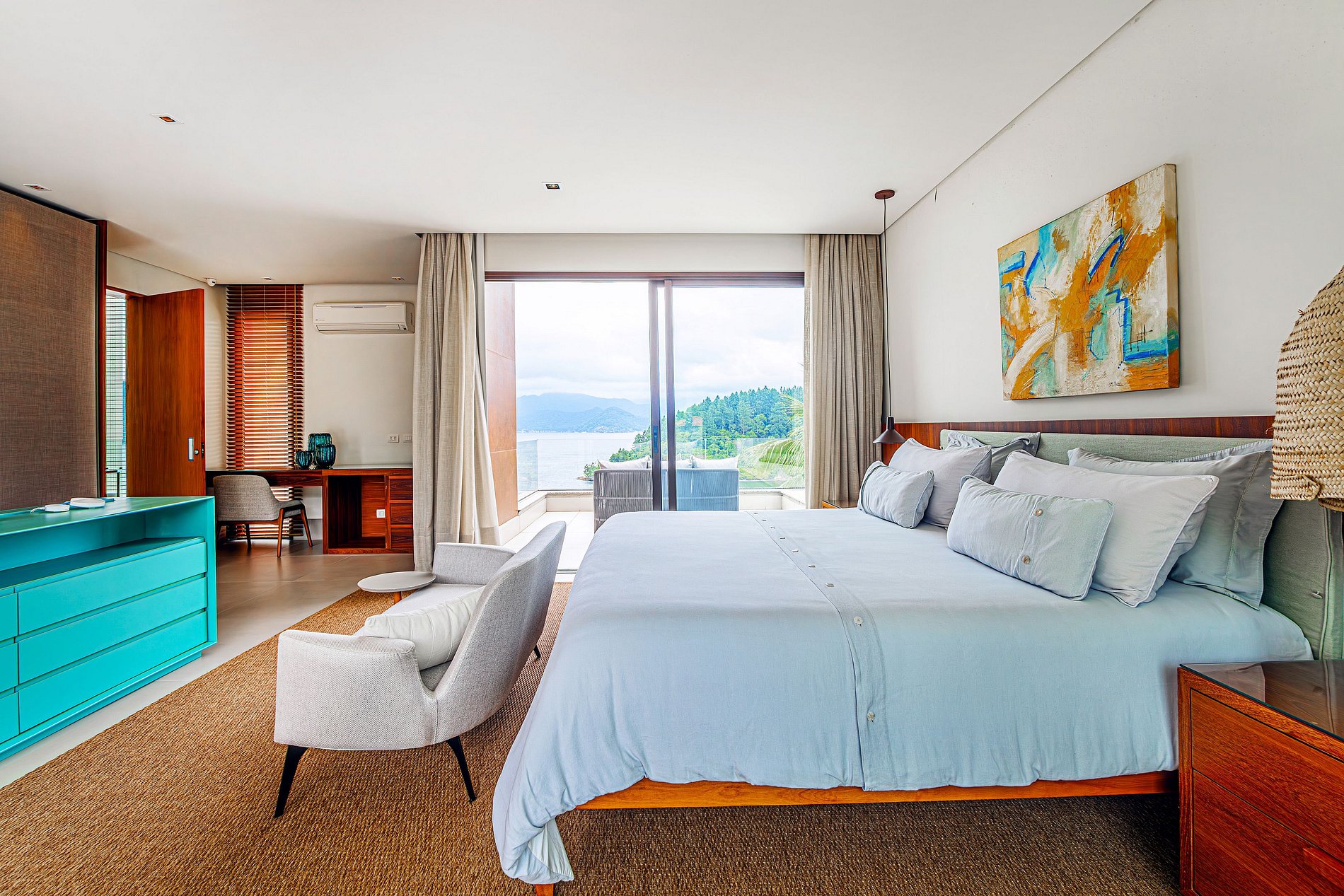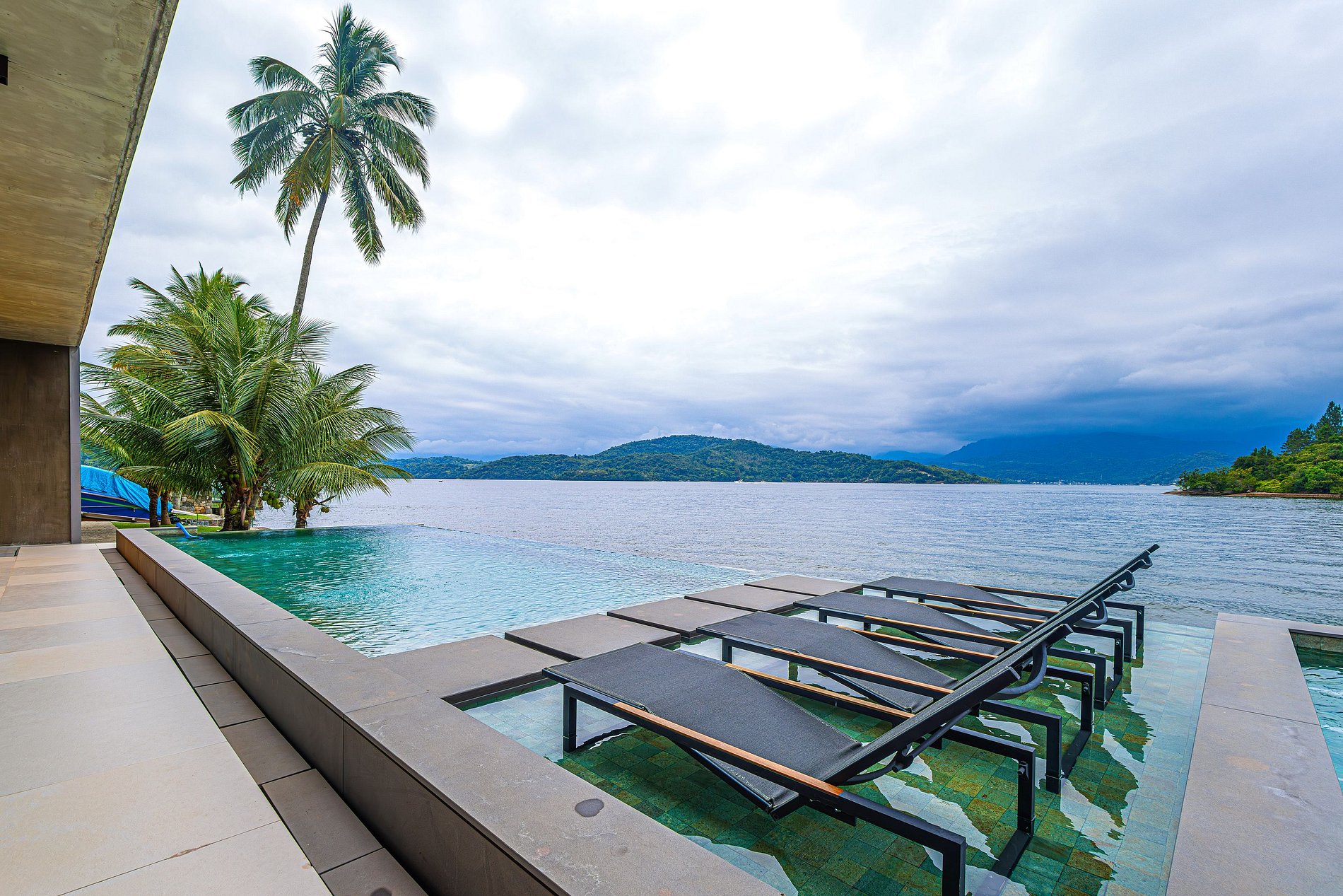 Descubra esta magnífica residência moderna à beira-mar que harmoniza luxo e natureza em um terreno de 5.600 m² e 1.900 m² de área construída. A propriedade, com vistas panorâmicas espetaculares, inclui uma casa principal com 5 suítes, incluindo a suíte máster com terraço privativo. Um estúdio adicional oferece 2 suítes com varanda e vista para o mar, ideal para hóspedes. Para o lazer, há uma academia e uma área gourmet à beira-mar com sauna, SPA, piscina, sala de jogos, sala de TV e um píer privativo.