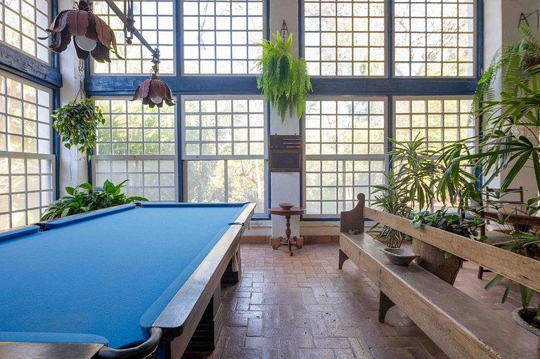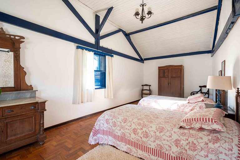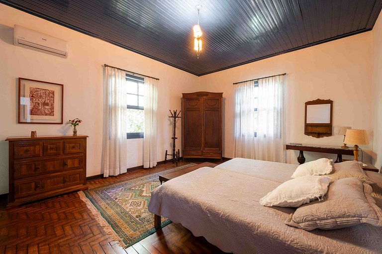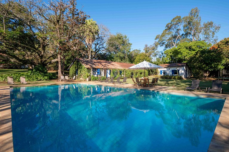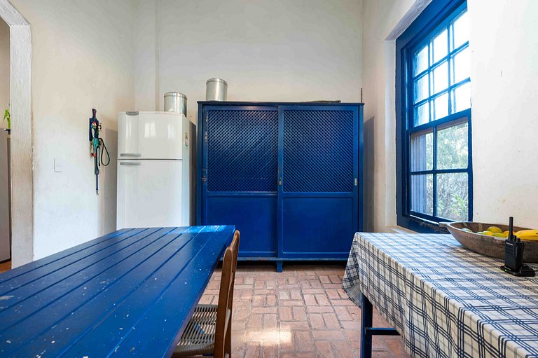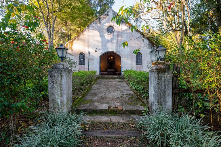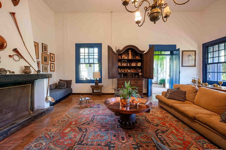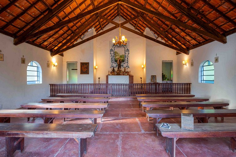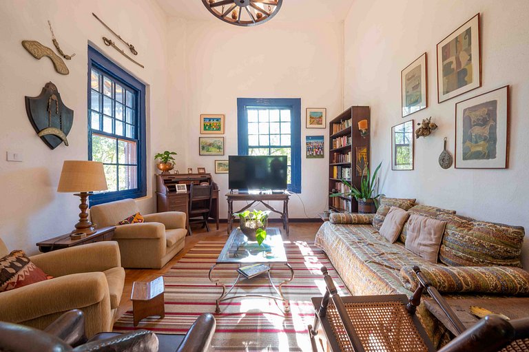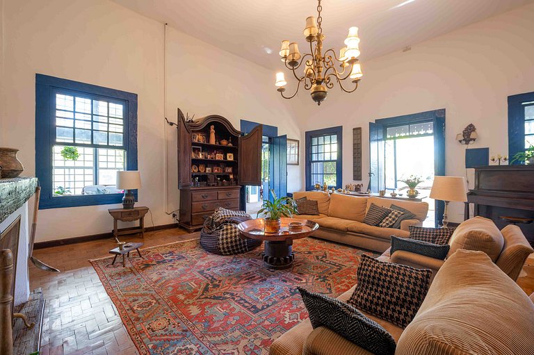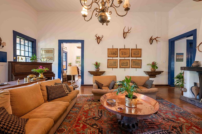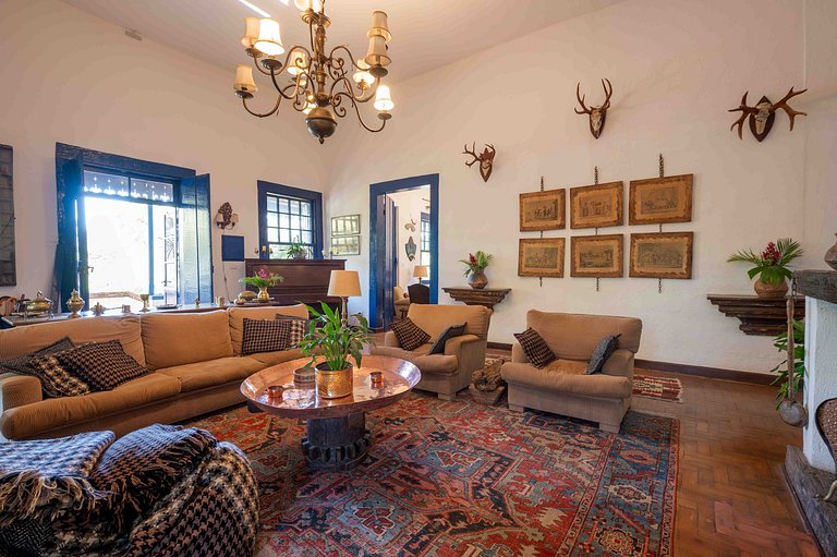 A sede, com mais de 150 anos de história, é uma construção colonial impecavelmente preservada, com 450m² de área total. Os ambientes foram pensados para proporcionar conforto e momentos de convivência inesquecíveis: ampla sala de jantar com duas mesas – uma para 12 lugares e outra redonda para 4 pessoas – sala de visitas com lareira e sofás, terraço fechado com mesa de snooker, saleta de TV e terraço na fachada principal, perfeito para contemplar a paisagem.