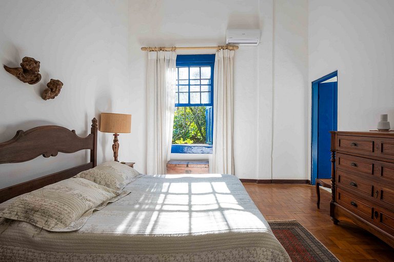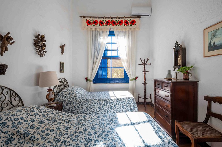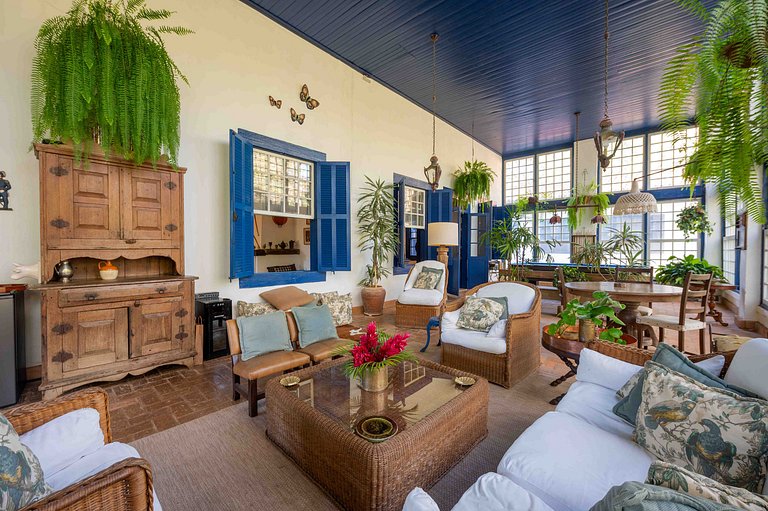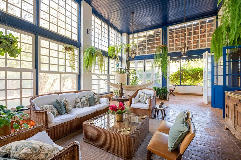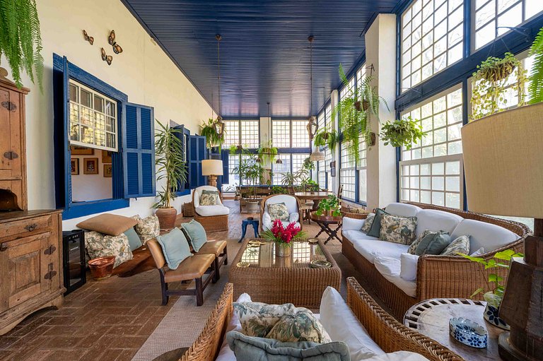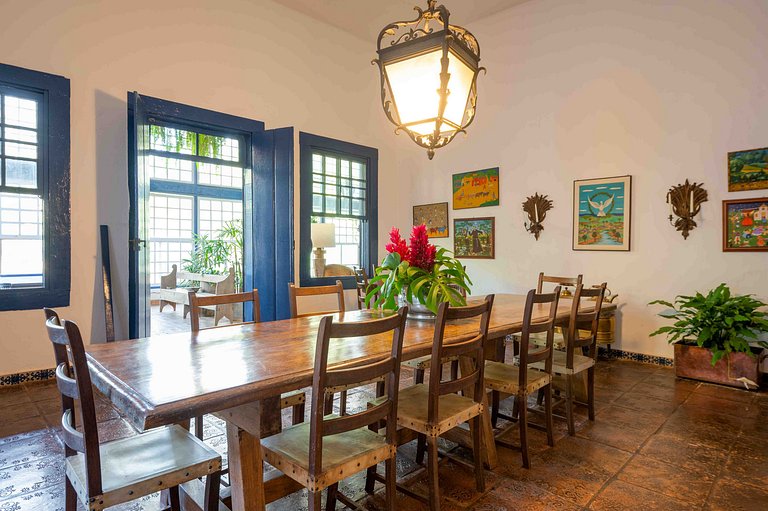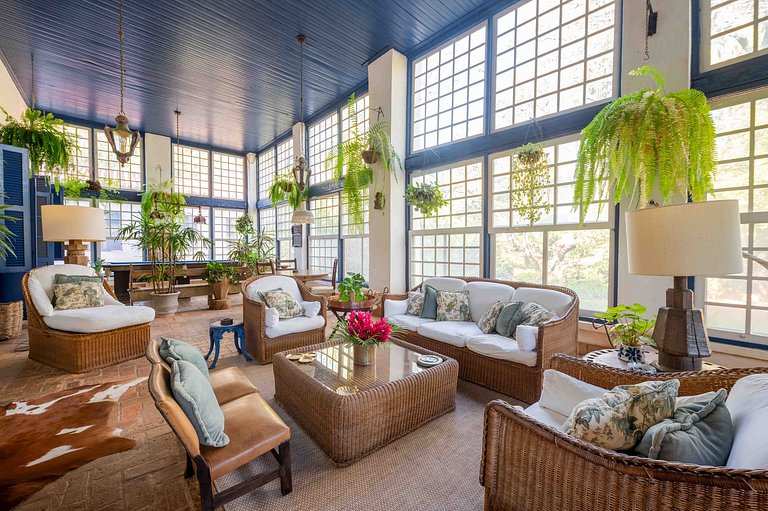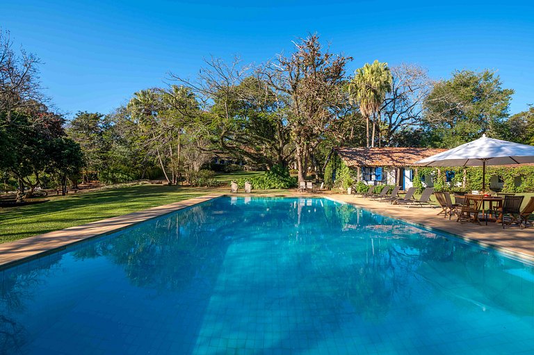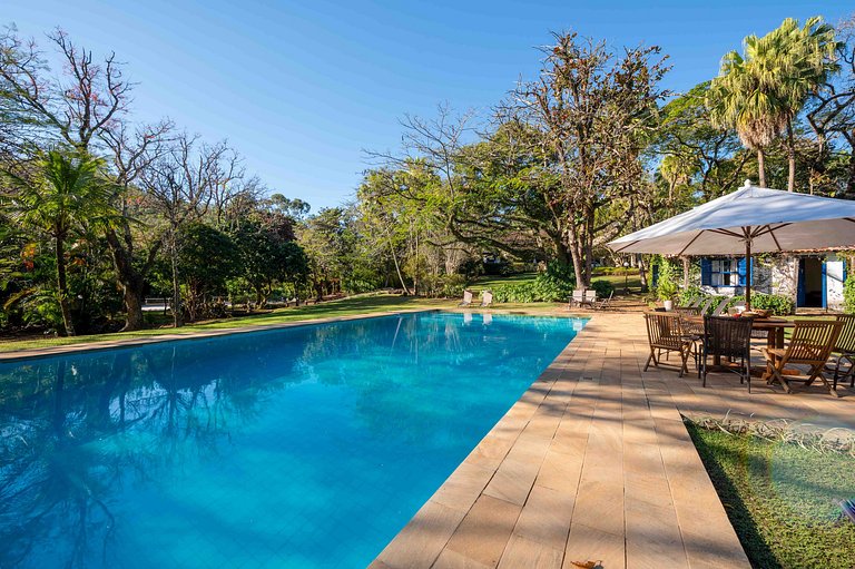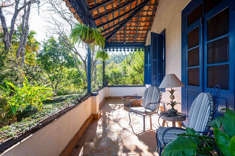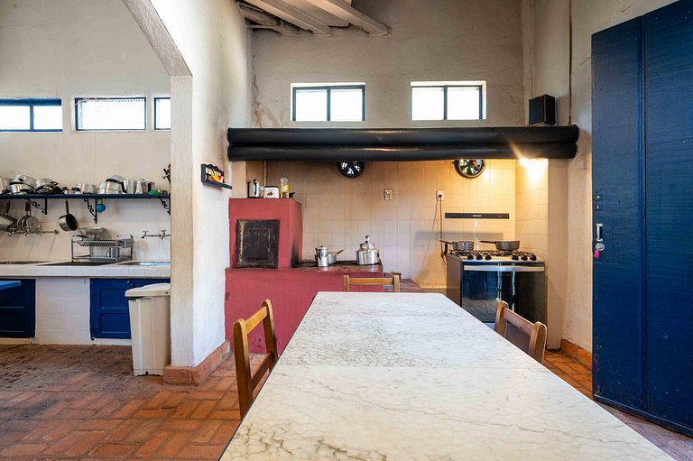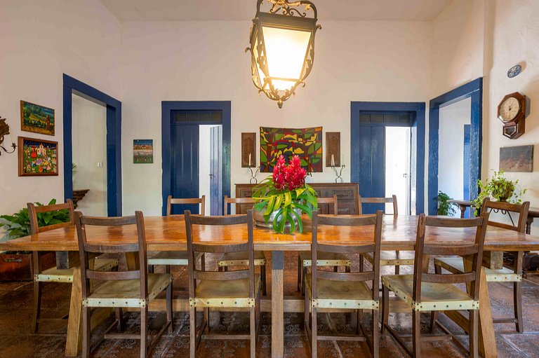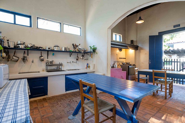 A sede, com mais de 150 anos de história, é uma construção colonial impecavelmente preservada, com 450m² de área total. Os ambientes foram pensados para proporcionar conforto e momentos de convivência inesquecíveis: ampla sala de jantar com duas mesas – uma para 12 lugares e outra redonda para 4 pessoas – sala de visitas com lareira e sofás, terraço fechado com mesa de snooker, saleta de TV e terraço na fachada principal, perfeito para contemplar a paisagem.