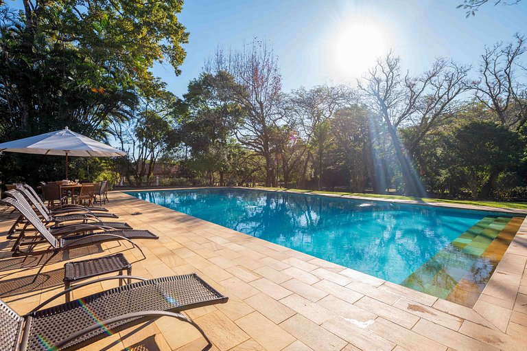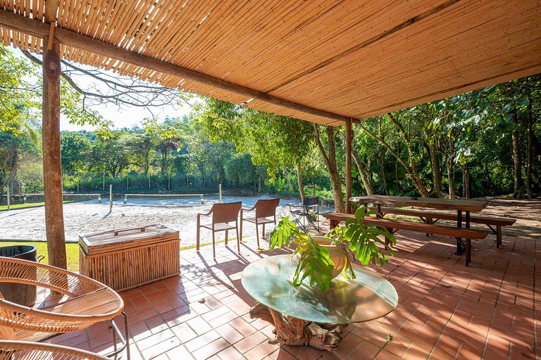 A apenas 1h15 de São Paulo, a Fazenda SAM é um verdadeiro refúgio de fácil acesso para quem busca tranquilidade sem abrir mão da proximidade com os grandes centros urbanos. Cercada por uma natureza exuberante de mata atlântica e mata nativa ciliar, a propriedade é margeada pelas águas cristalinas do Rio Atibaia, que forma uma belíssima cachoeira em seu interior. Este cenário único é ideal para trilhas de bike e outras atividades ao ar livre, contando ainda com duas quadras de areia e uma quadra de tênis.