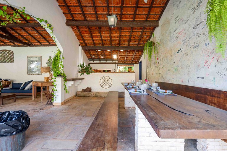A cozinha é completa, equipada com armários sob medida, fogão a lenda, forno de pizza e eletrodomésticos de alta performance e uma seleção de utensílios de primeira linha, prontos para atender aos mais diversos estilos de gastronomia.