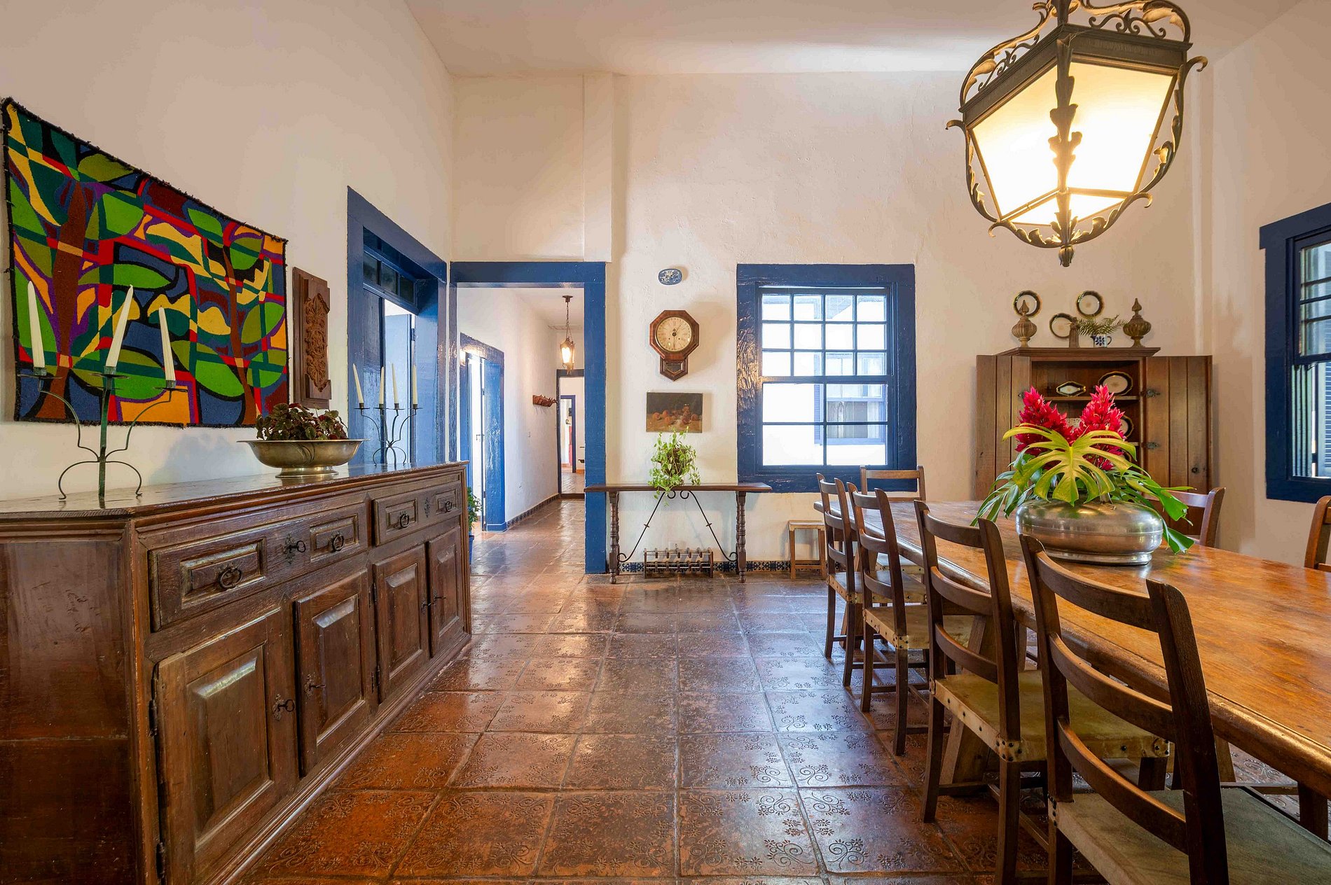 A sede, com mais de 150 anos de história, é uma construção colonial impecavelmente preservada, com 450m² de área total. Os ambientes foram pensados para proporcionar conforto e momentos de convivência inesquecíveis: ampla sala de jantar com duas mesas – uma para 12 lugares e outra redonda para 4 pessoas – sala de visitas com lareira e sofás, terraço fechado com mesa de snooker, saleta de TV e terraço na fachada principal, perfeito para contemplar a paisagem.