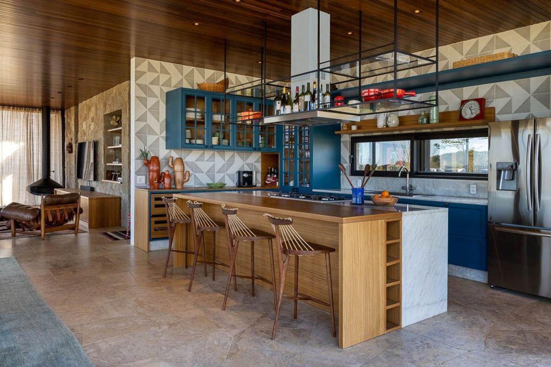 Cozinha no estilo ilha, planejada para unir funcionalidade e design. Totalmente equipada com armários, utensílios e eletrodomésticos de primeira linha, é o espaço ideal tanto para chefs quanto para experiências gastronômicas em família.