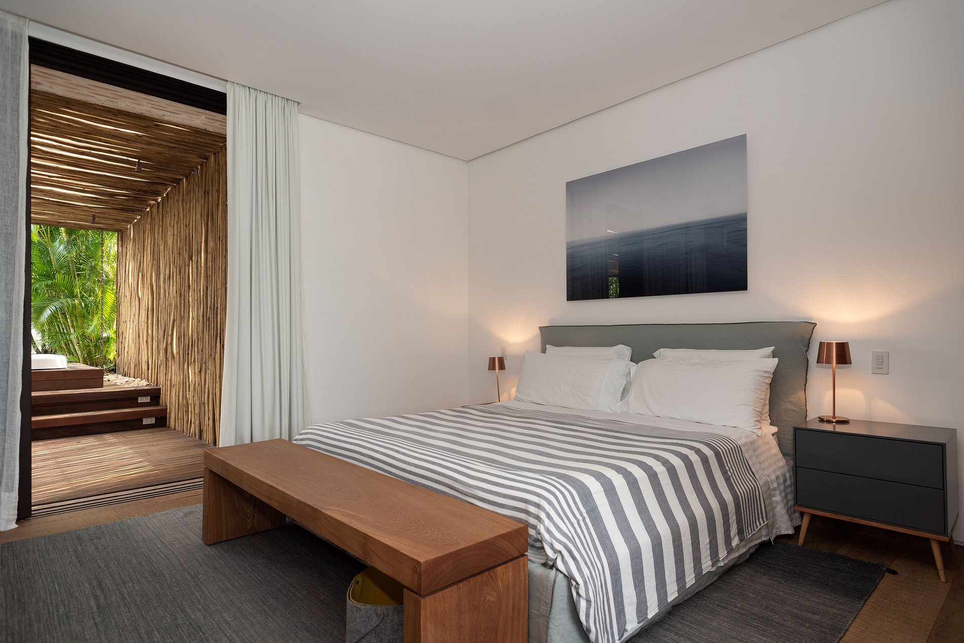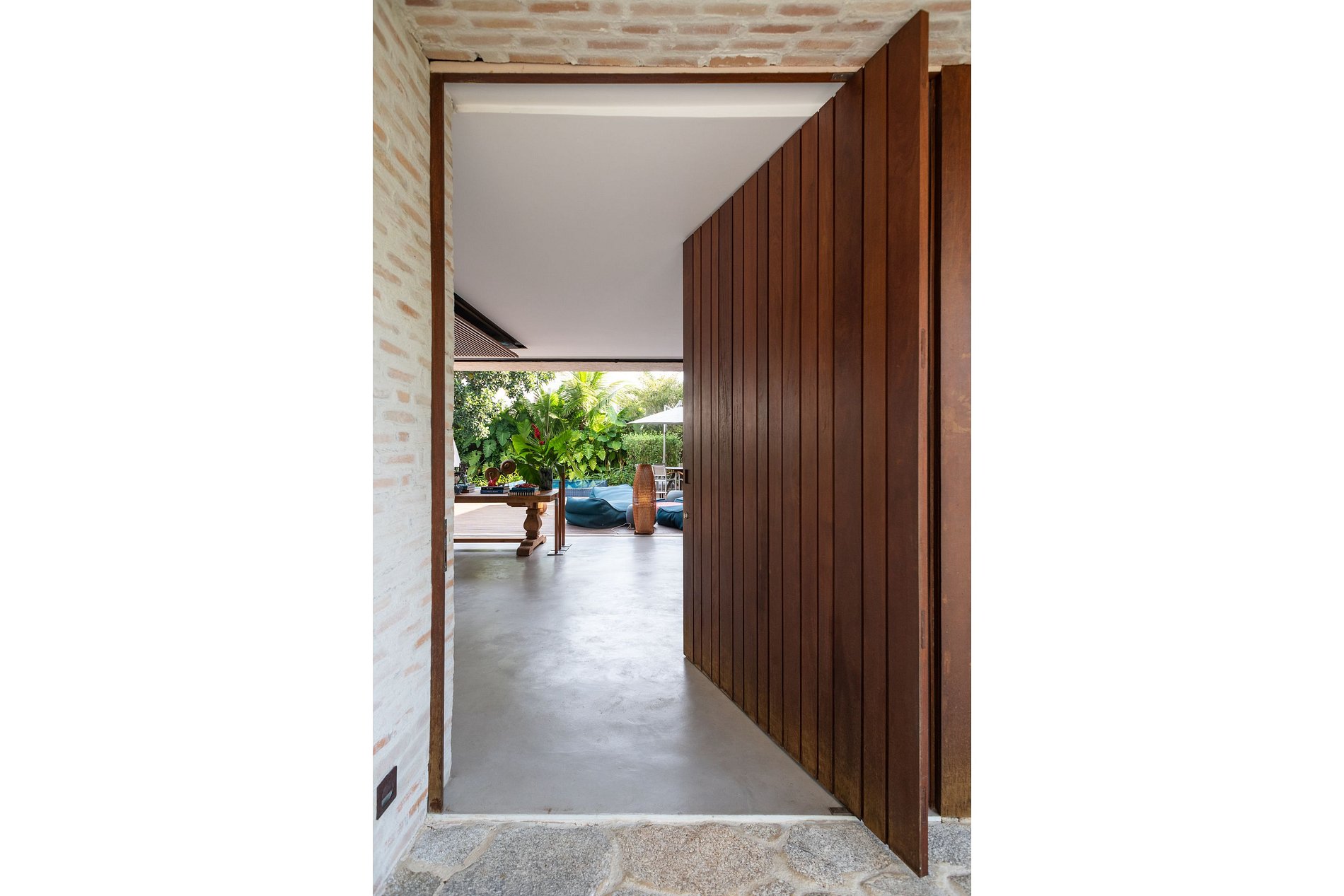 Ambientes amplos, arejados e iluminados; sala de estar com poltronas e sofás aconchegantes, mesa de jogos e enormes portas de vidro voltadas tanto para a piscina, quanto para uma encantadora parede verde, emoldurando a vegetação. Mobiliário e decoração elegantes e contemporâneos com peças de arte maravilhosas!